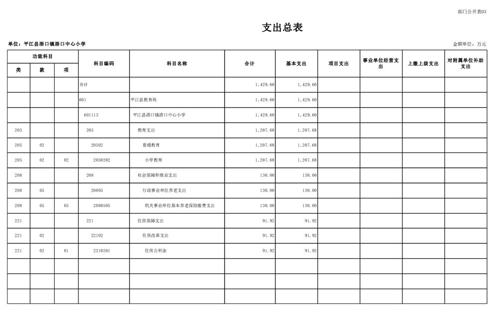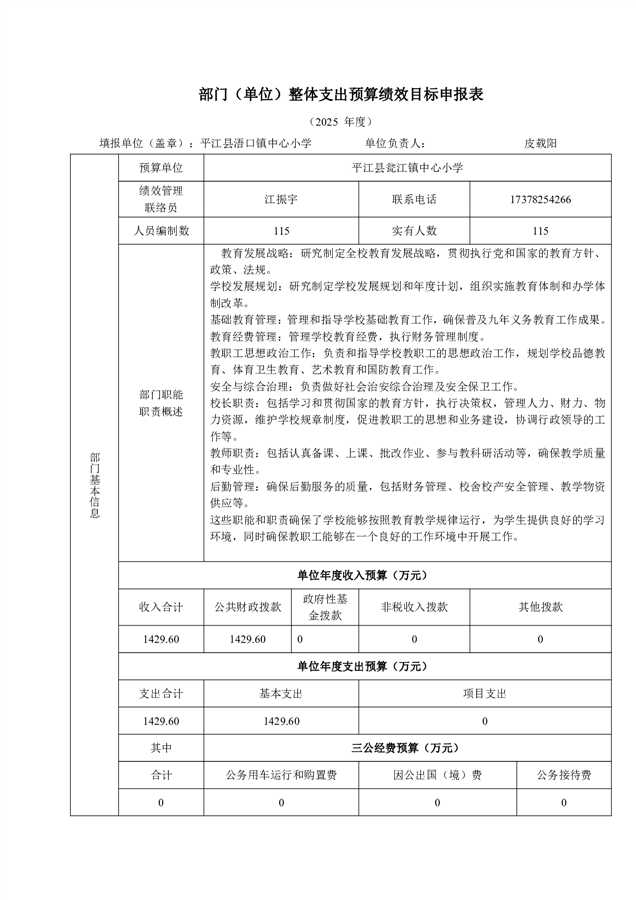 平江县浯口镇浯口中心小学2025年部门预算公开