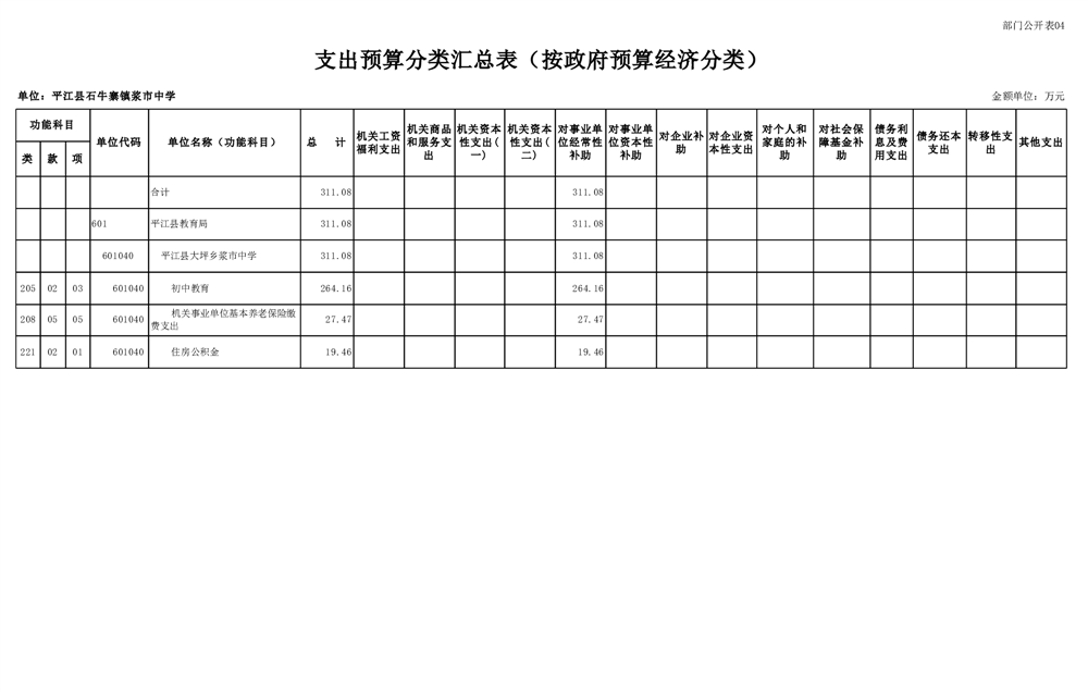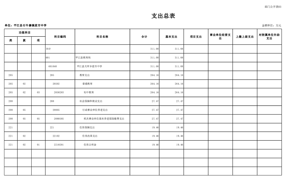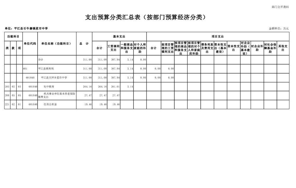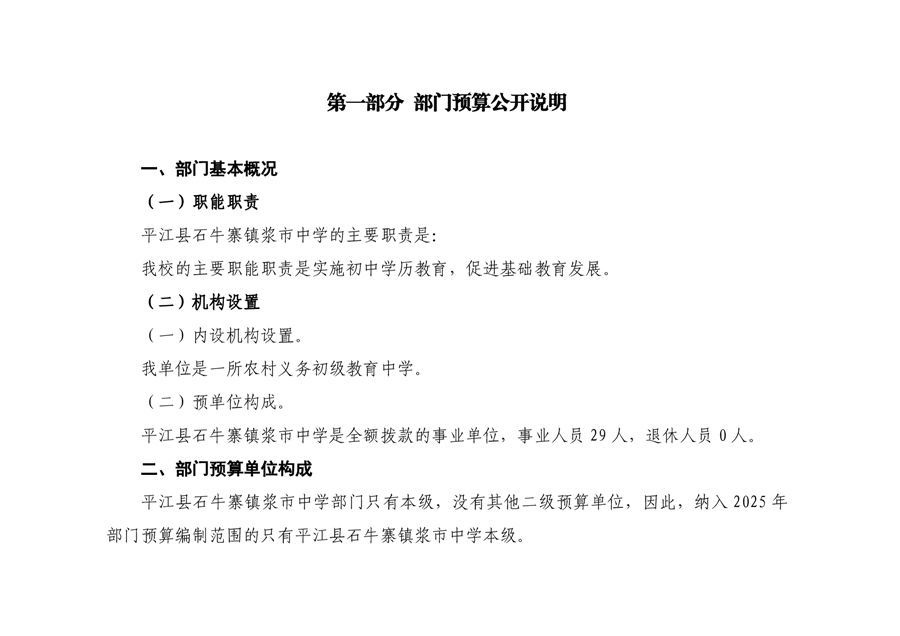平江县石牛寨浆市中学2025年部门预算公开