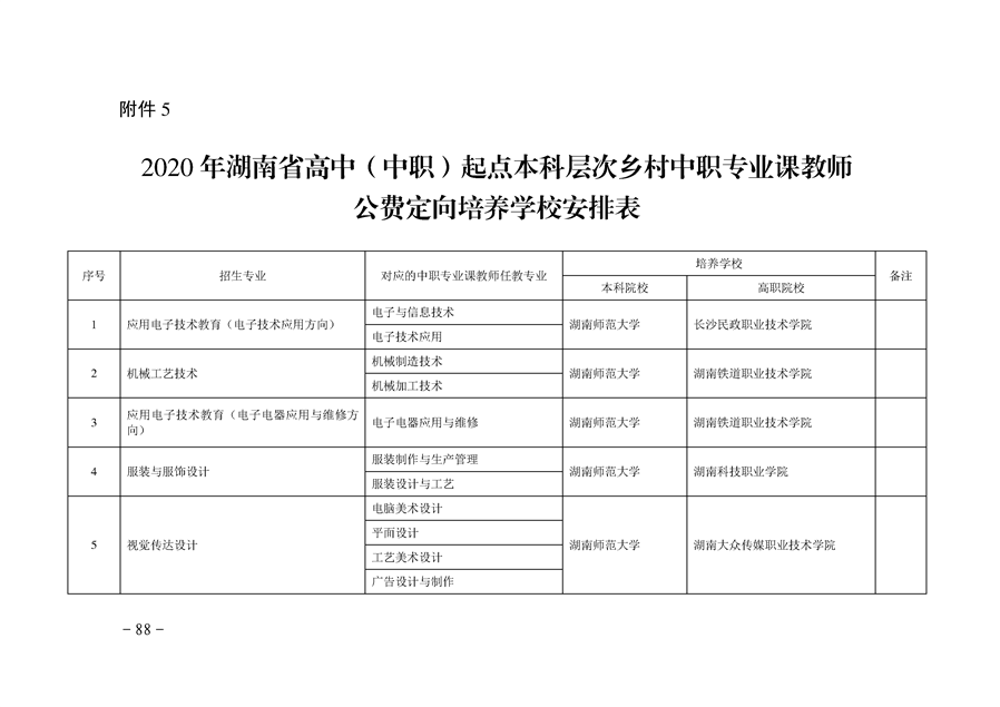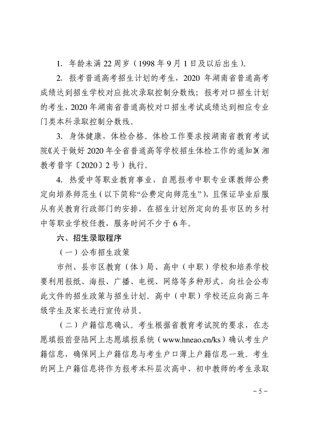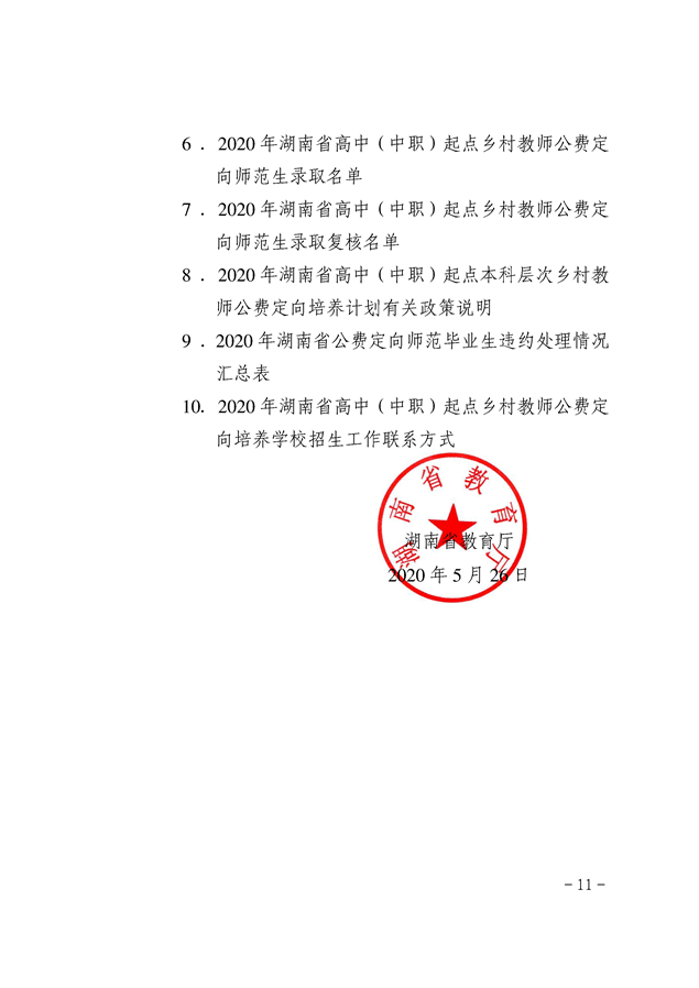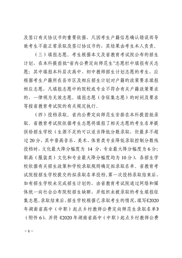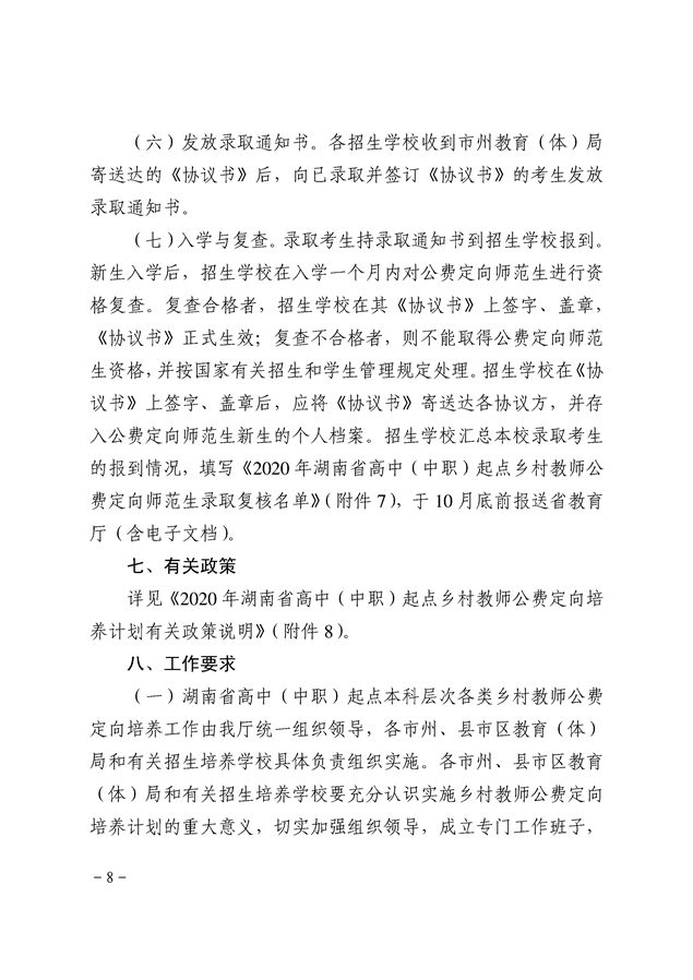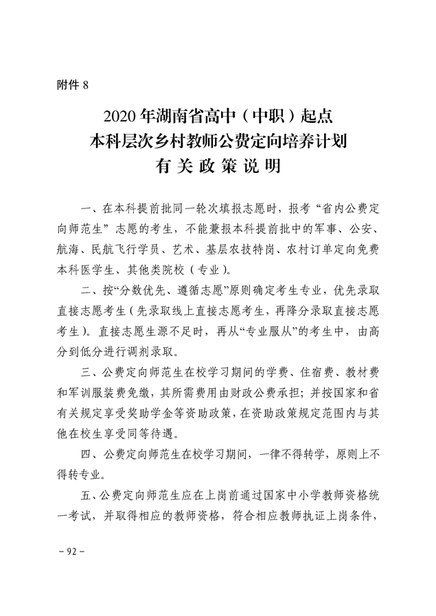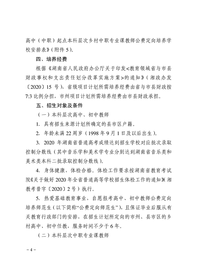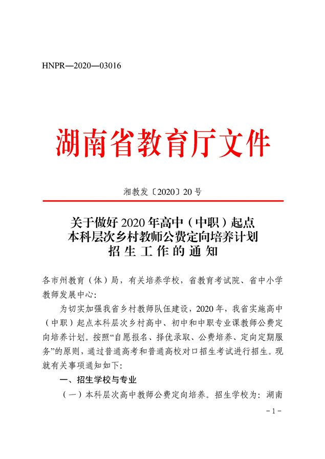 湘教发〔2020〕20号 关于做好2020年高中(中职)起点本科层次乡村教师公费定向培养计划招生工作的通知