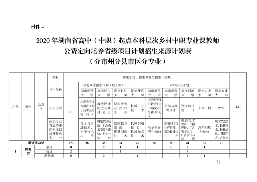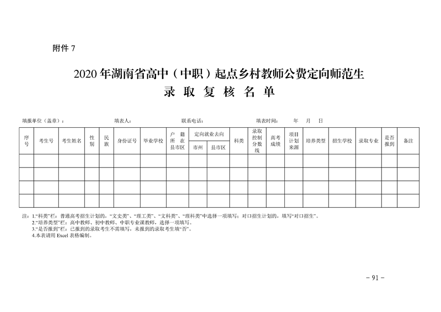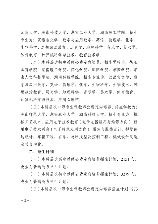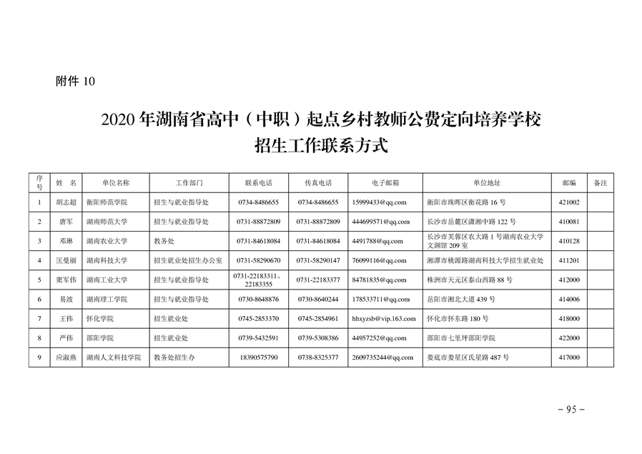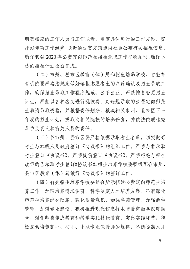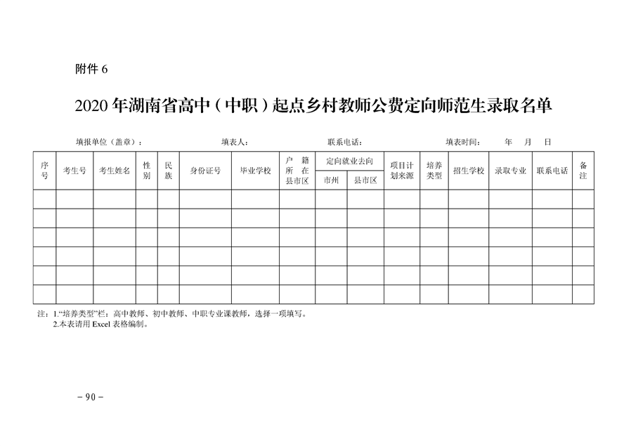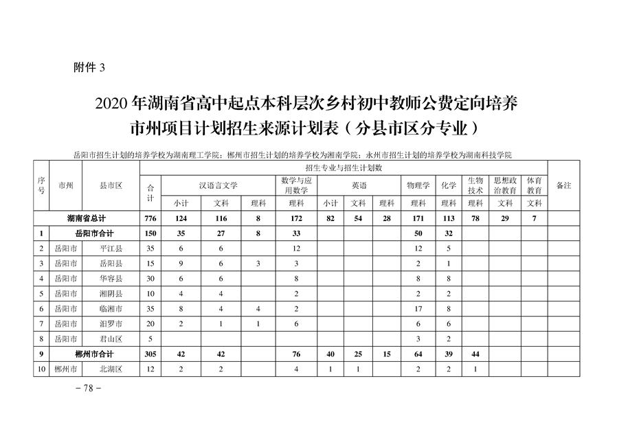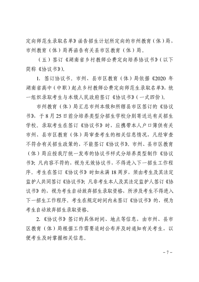湘教发〔2020〕20号 关于做好2020年高中(中职)起点本科层次乡村教师公费定向培养计划招生工作的通知