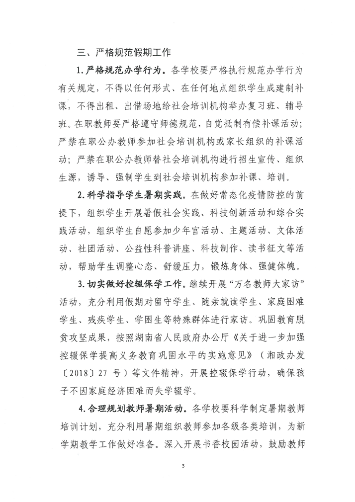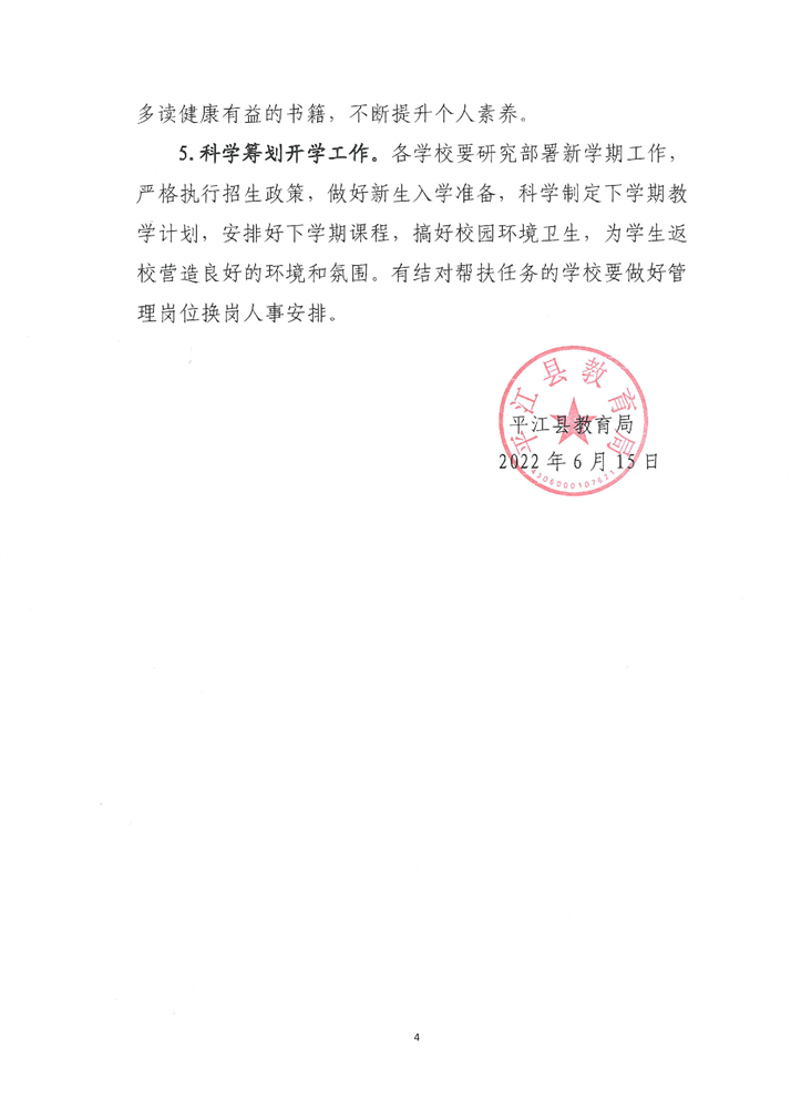 平江县教育局 关于做好2022年全县中小学暑期有关工作的通知
