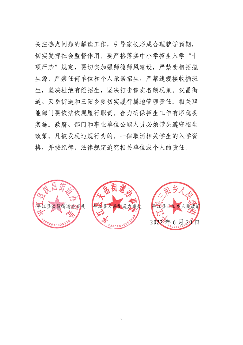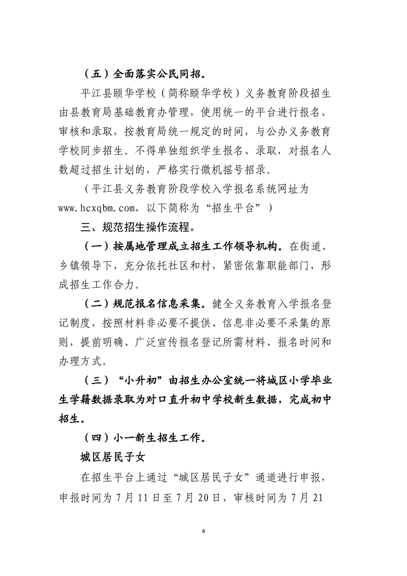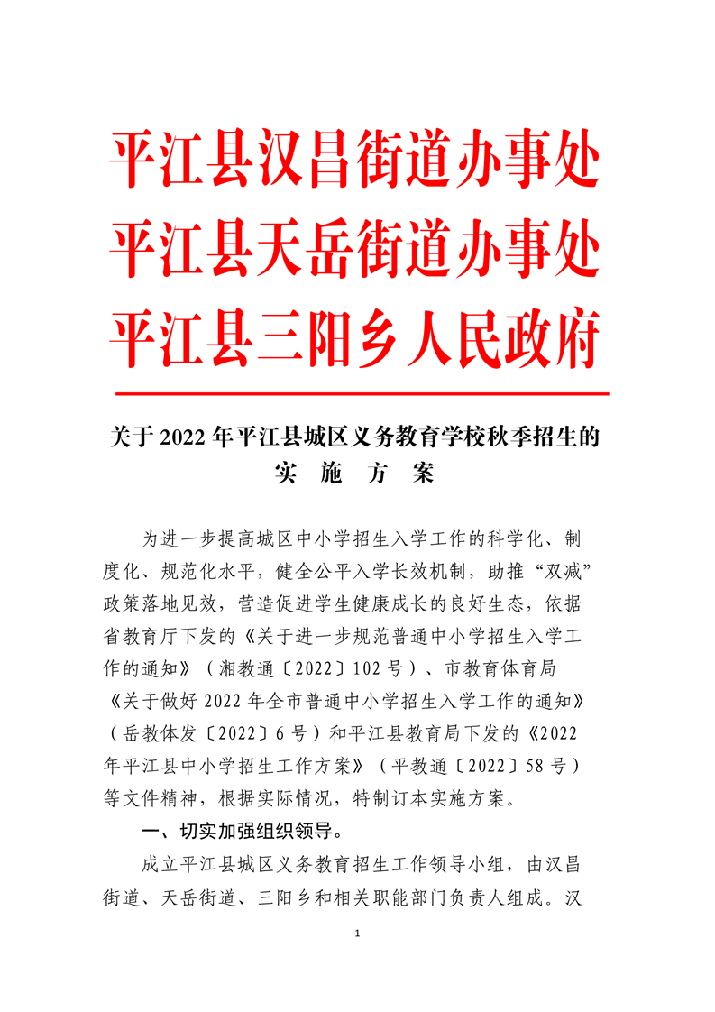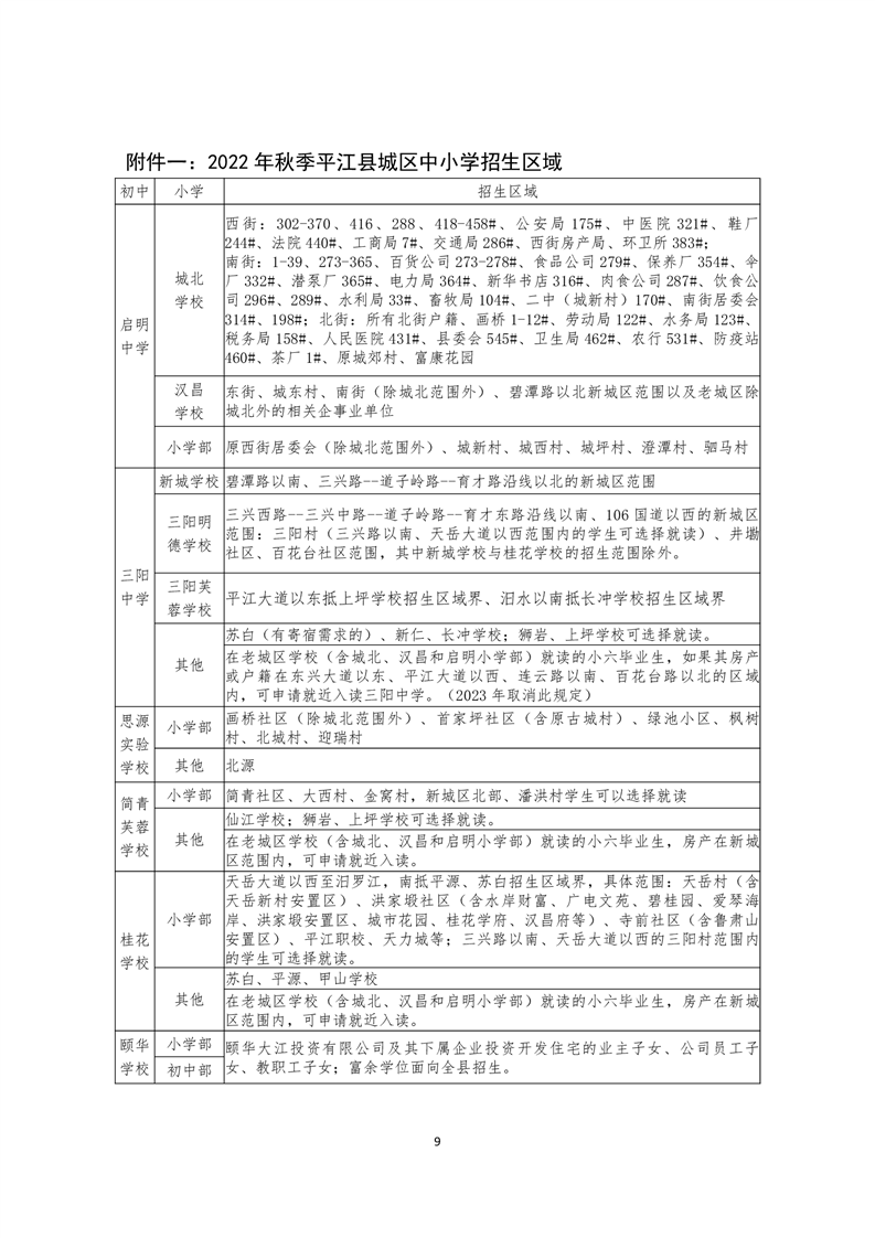 2022年平江县城区义务教育学校秋季招生实施方案