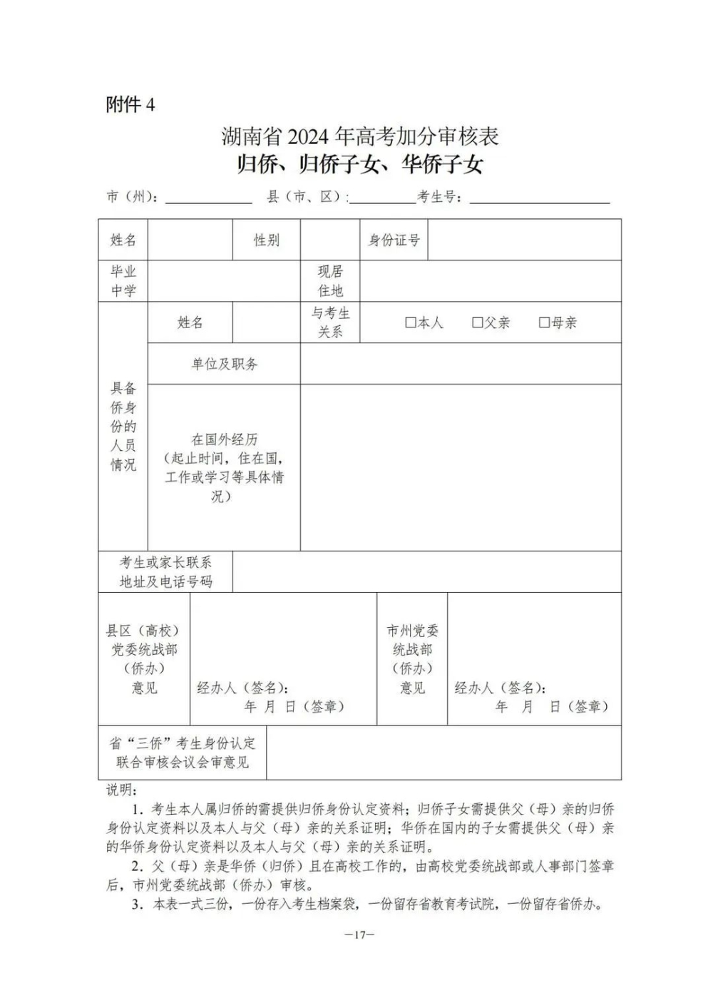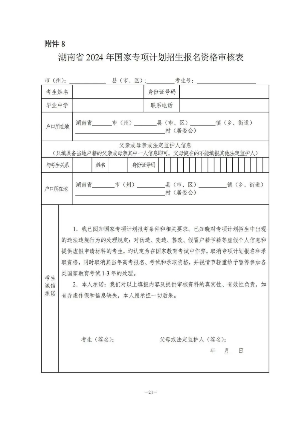 湖南省2024年普通高校招生考生优惠信息及专项计划资格申报审核问答