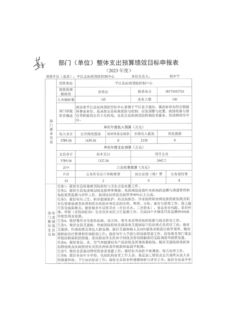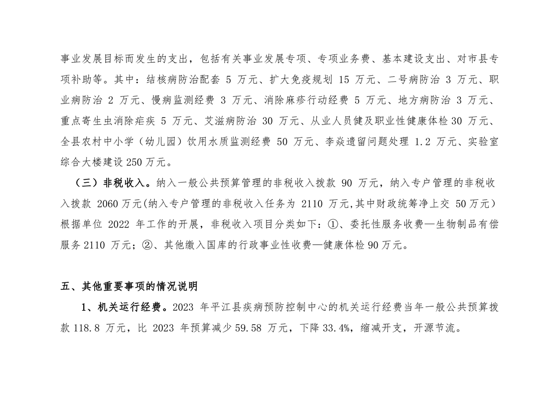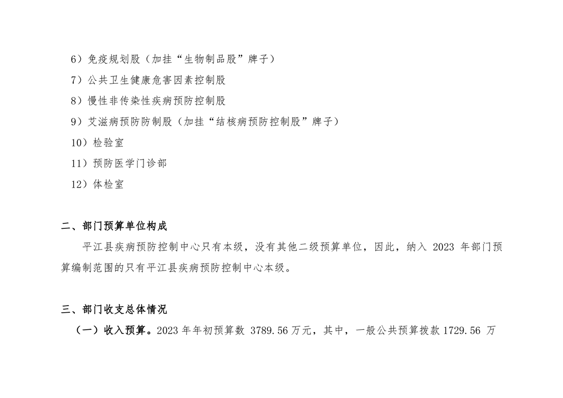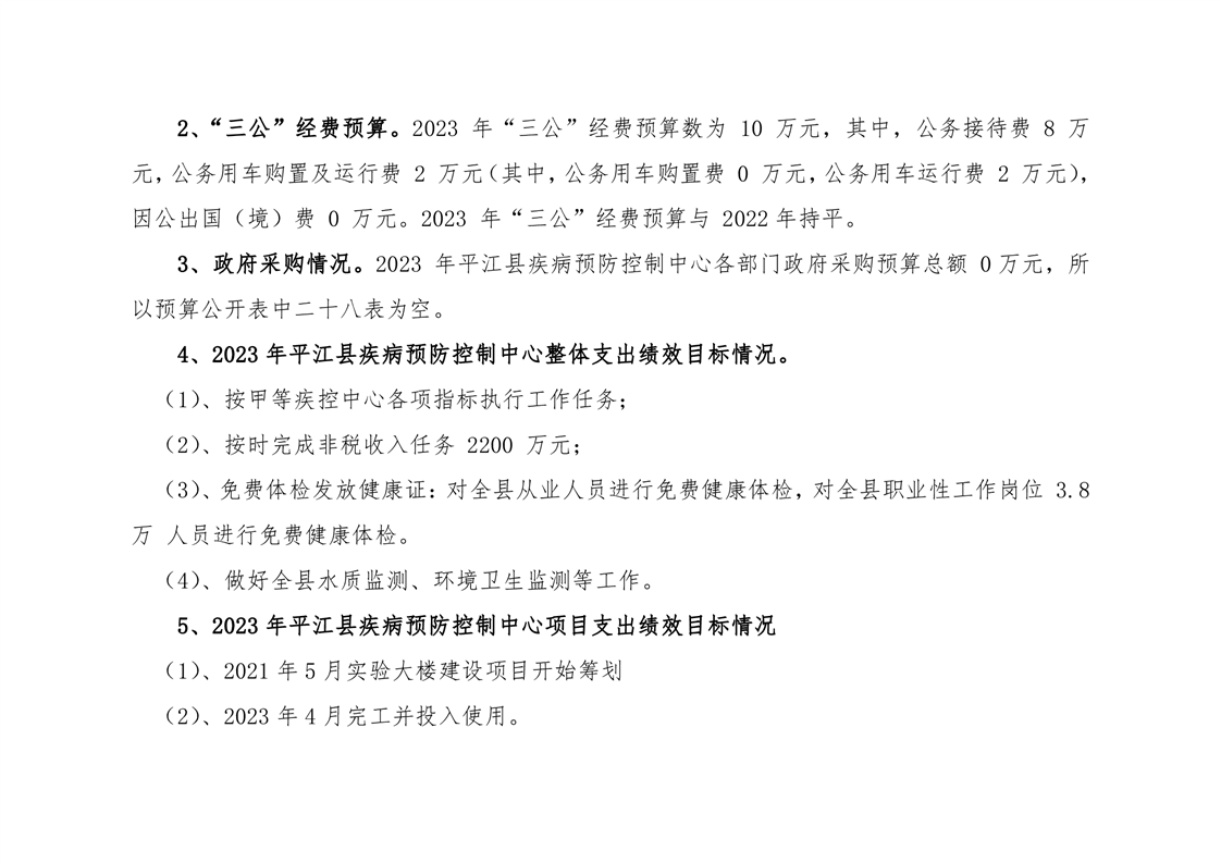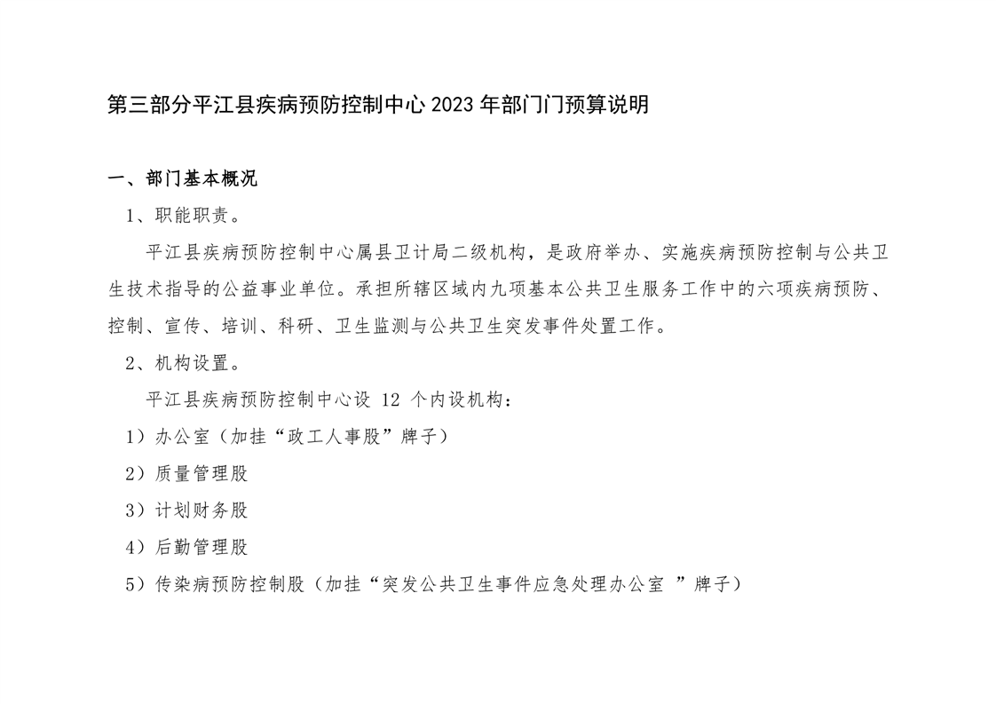 平江县疾病预防控制中心2023年部门预算说明