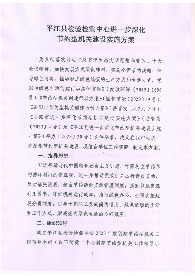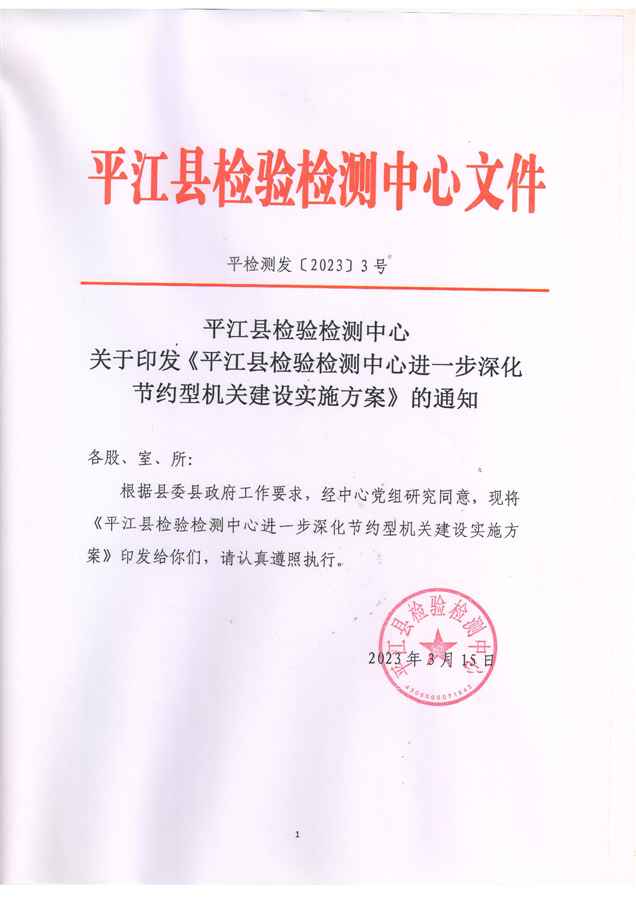 关于印发《平江县检验检测中心进一步深化节约型机关建设实施方案》的通知