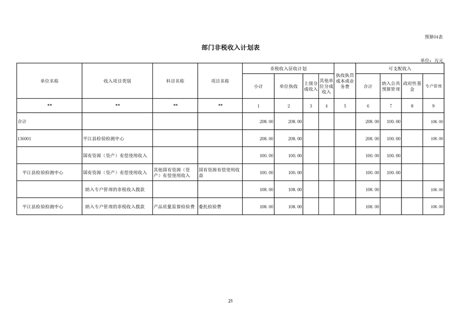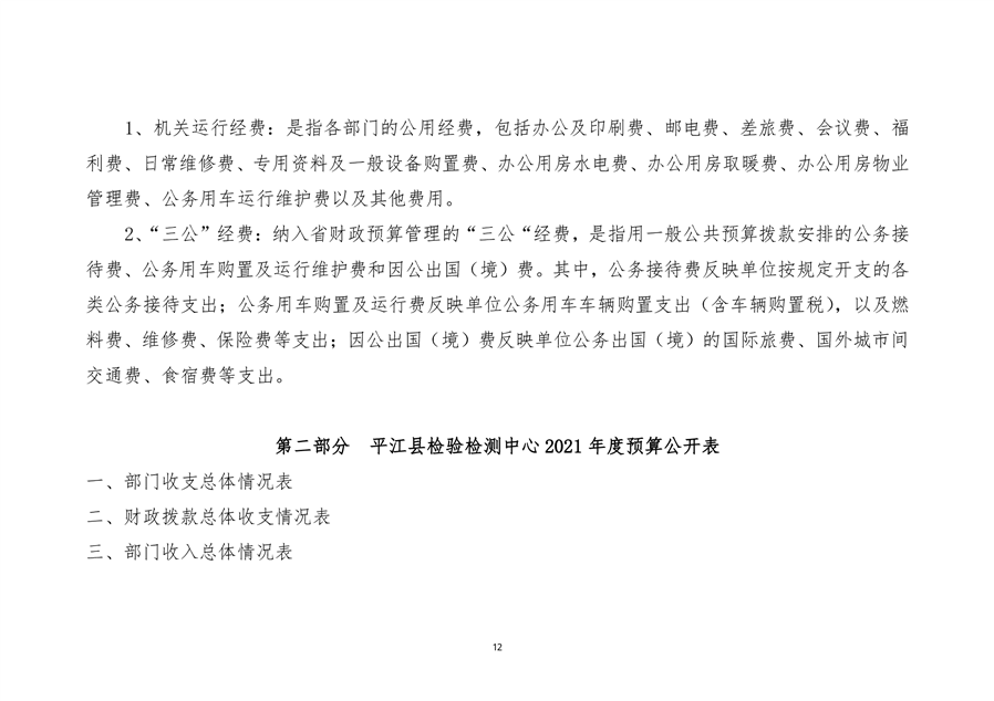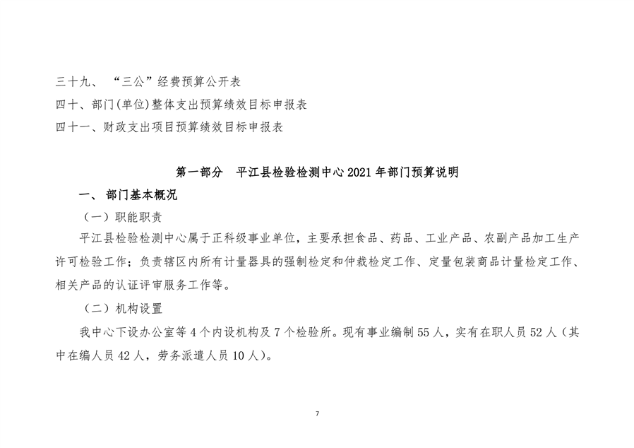 平江县检验检测中心2021年度部门预算