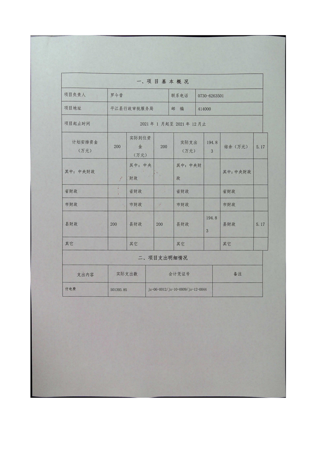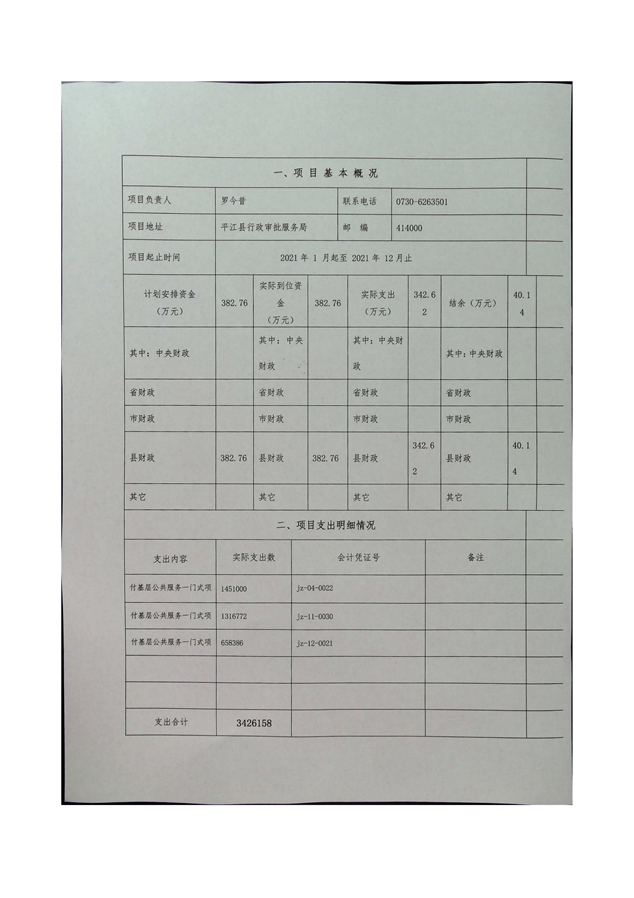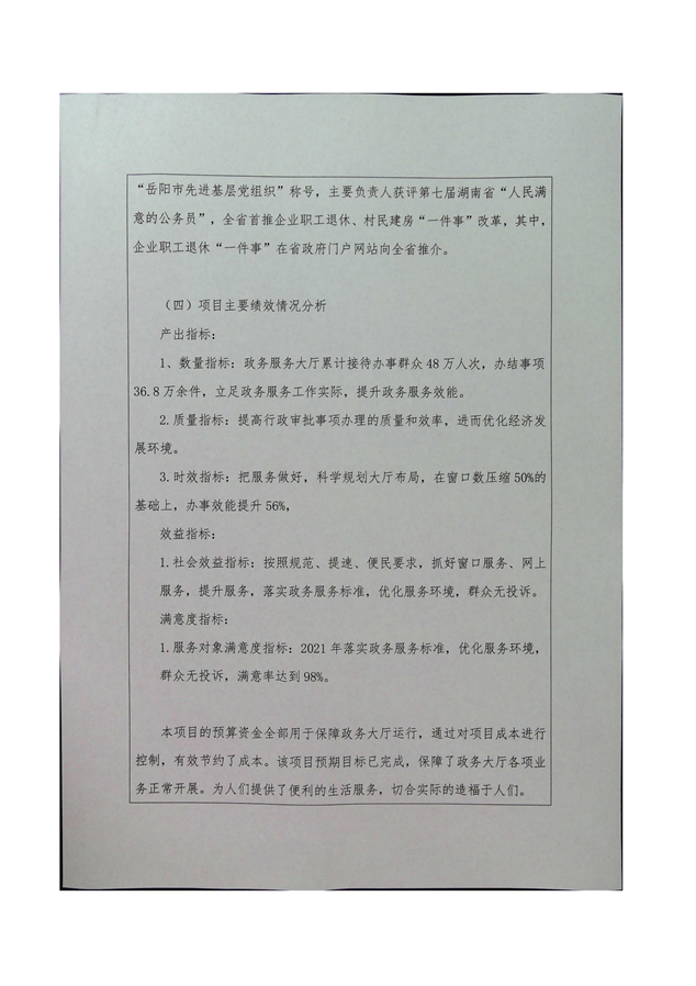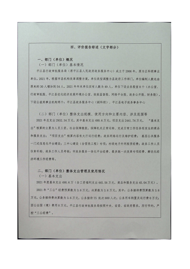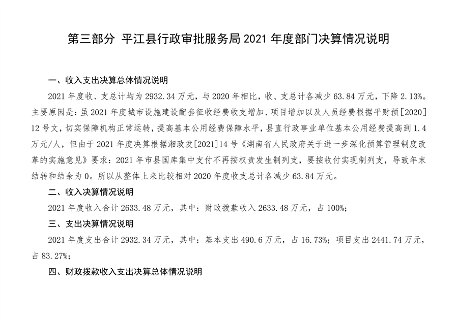 平江县行政审批服务局2021年部门决算