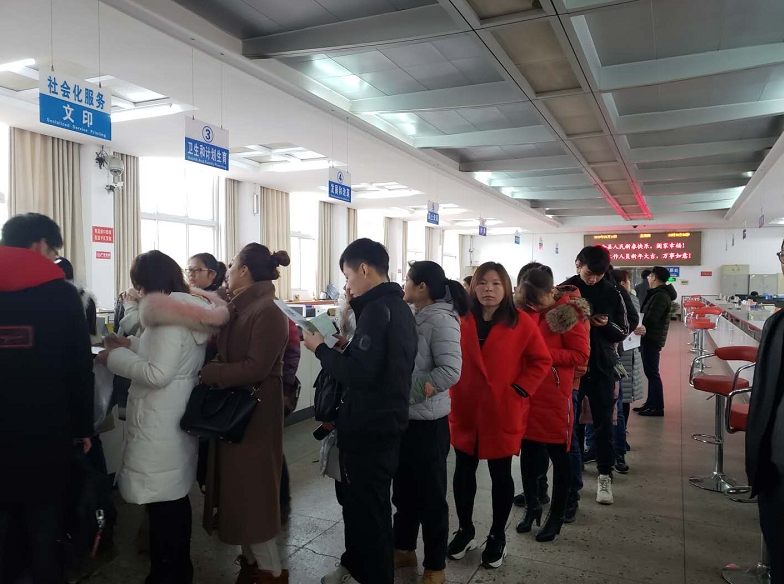 笔者了解到,上午上班后不到半个小时,就有30对新人领取了结婚证。前来民政窗口办理业务的群众越来越多,队伍排成了一条长龙,安保人员不停穿梭在人群中引导排队,并及时制止了一名插队群众,引来大家的交口称赞。到中午12点,大厅里仍有少数群众未办完相关业务,窗口工作人员依然坚守岗位。“群众们来一趟不容易,我们推迟下班没关系,要尽最大的能力满足他们的办事需求。”直到最后一名办证群众离开大厅,工作人员才开始整理资料下班。