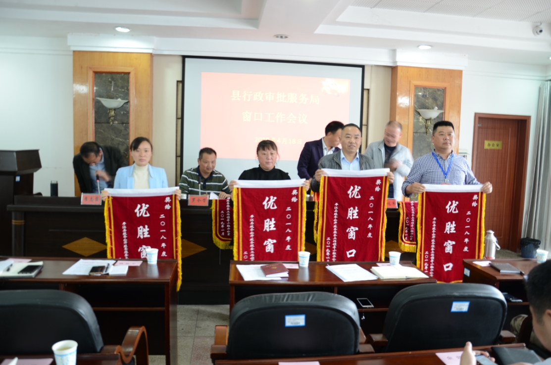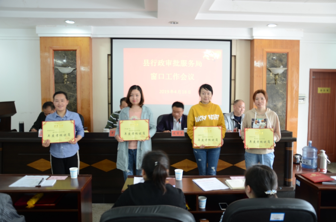 会议宣读了《关于表彰2018年度政务中心“优胜窗口”“优秀窗口工作人员”的通报》(平政务公开办〔2019〕1号)和《关于表彰2019年一季度红旗窗口和服务标兵的通报》(平政务公开办〔2019〕4号)文件,并为获得表彰奖励的窗口及个人进行了颁奖。不动产登记、食品药品工商质量监督管理、民政、环保、房产、人口与出入境、规划、发改共8个窗口荣获2018年度“优胜窗口”荣誉称号。邓兵书、单燕、邱检星、欧阳苹、黄烨等26名同志荣获2018年度考核“优岗人员”荣誉称号。洪霞、李琪玉、苏晓江等10名同志荣获2018年度“优秀窗口工作人员”。食品药品工商质量监督管理窗口等4个窗口和江述等8位同志被评为2019年一季度红旗窗口和服务标兵。