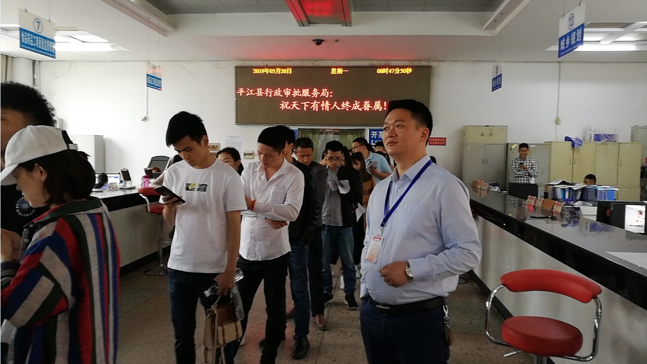 为了让新人们更好更快地领到结婚证,县行政审批服务局提前做好预案,做到了“三服务”:实行引导服务,安排各个岗位上的工作人员提前到岗,引导办证群众排队、填表、提交资料、照相等,确保每个环节规范、有序;推行延时服务,坚持当日业务当日办完,最大限度地满足每一位进厅办事群众办事需求;提供贴心服务,秉承人性化服务理念,一早在大厅电子显示屏上送上温馨祝福:祝愿天下有情人终成眷属!同时安排多名志愿者咨询接待,业务骨干审查把关处理疑难问题,确保每一对新人都能得到最暖心最贴心的登记服务。