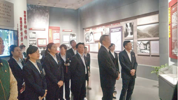 “我志愿加入中国共产党....”,在平江起义馆,全体党员在革命先烈群雕前重温入党誓词。接着,大家在讲解员的引导下,参观了遗物文献,认真聆听了烈士英雄事迹。大家在一幅幅历史照片和一件件珍贵遗物中,缅怀和追忆革命先烈在那段烽火岁月中的奋斗故事。