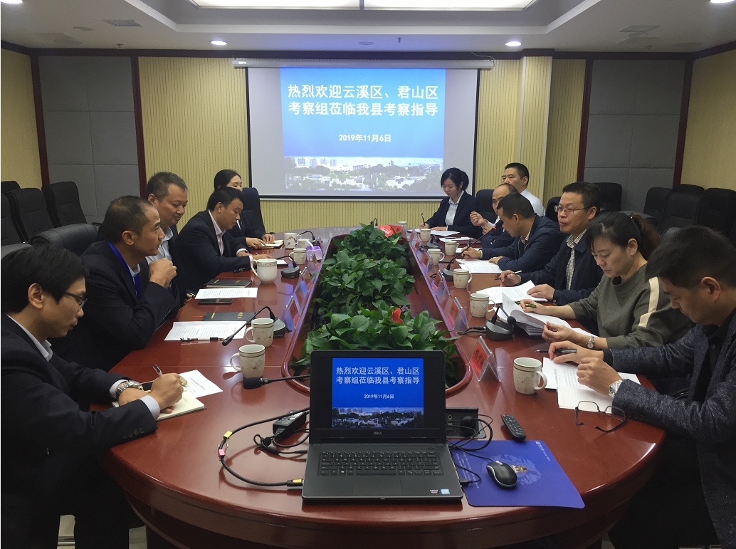 11月6日,君山区、云溪区行政审批服务局主要负责人率领联合考察组一行17人,来到我县新政务服务大厅考察交流工作,县行政审批服务局局长罗今昔和相关负责人陪同考察。