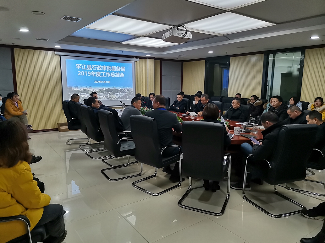为总结2019年工作,规划好2020年工作,1月21日,县行政审批服务局在机关会议室举行2019年工作总结大会。局党组全体成员、二级机构负责人、老领导和机关干部职工参加会议,副局长龙吉平主持会议。