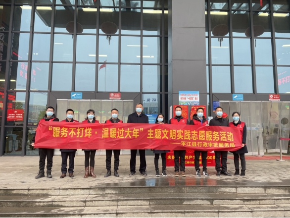 1月24日,为充分发挥省级文明窗口单位先锋示范作用,县行政审批服务局集中组织开展了“服务不打烊·温暖过大年”主题文明实践志愿服务活动,各窗口单位、局机关近30名志愿者参与其中。
