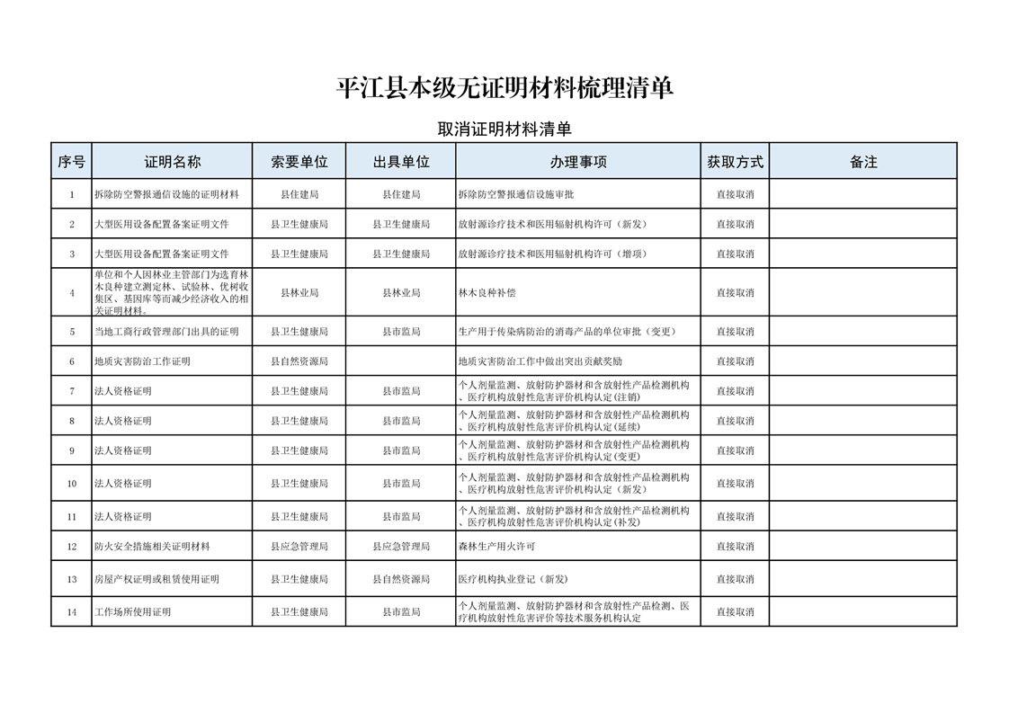 (5)直接取消:无法律效力,法无规定一律取消的证明材料。