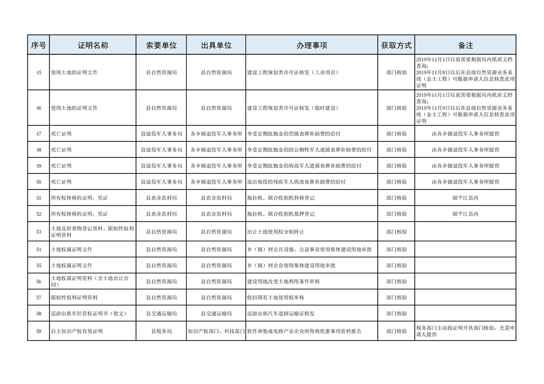 (1)部门核验:由行政审批单位和证明出具单位主动核查该证明信息,无需申请人来提供该证明。