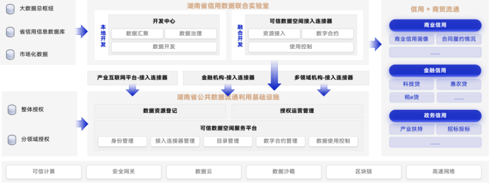 联合实验室将开发形成的数据产品和服务上架至湖南省公共数据流通利用基础设施,供各数据需求方灵活调用,如“湘信贷”平台、商贸流通平台及其他各类产业互联网平台,充分释放信用数据价值。