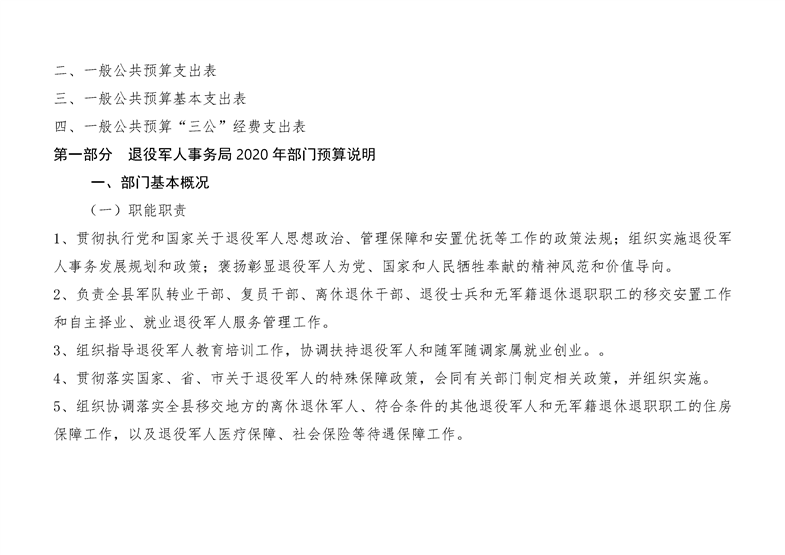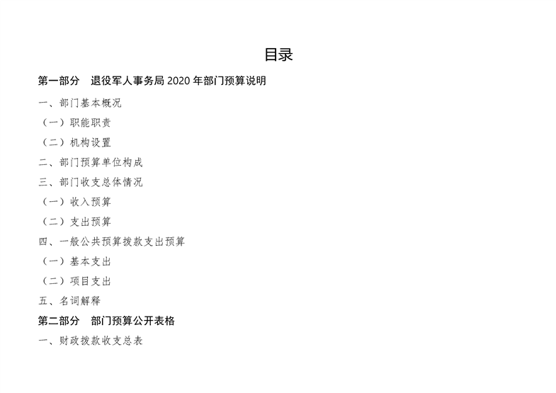 2020年退役军人事务局部门预算公开调整