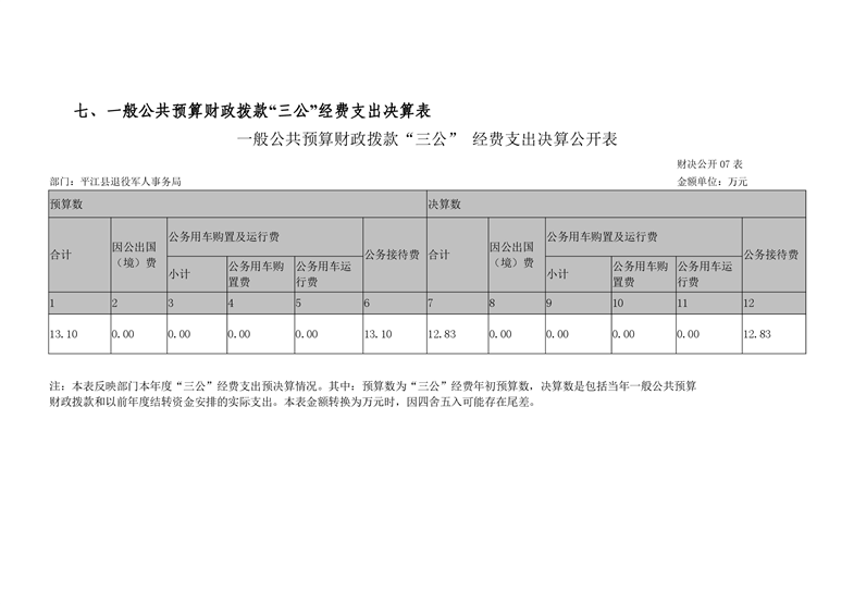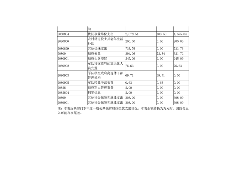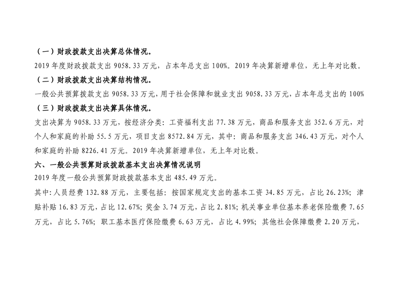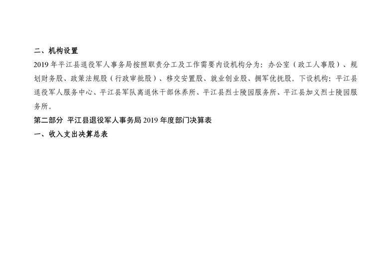 县退役军人事务局2019年部门决算公开说明