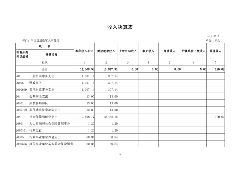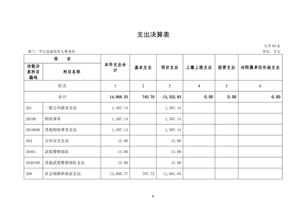 2024年度平江县退役军人事务局部门(单位) 部门决算