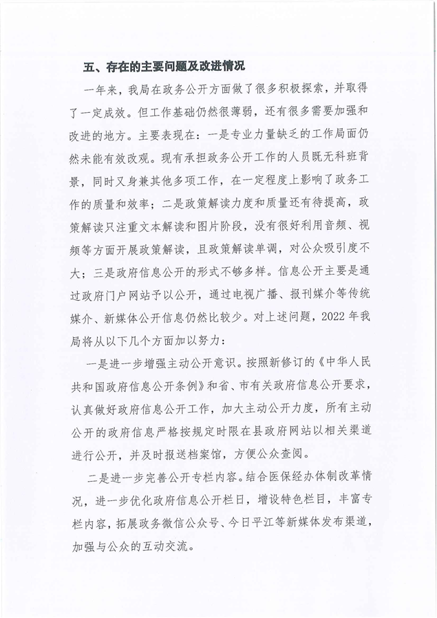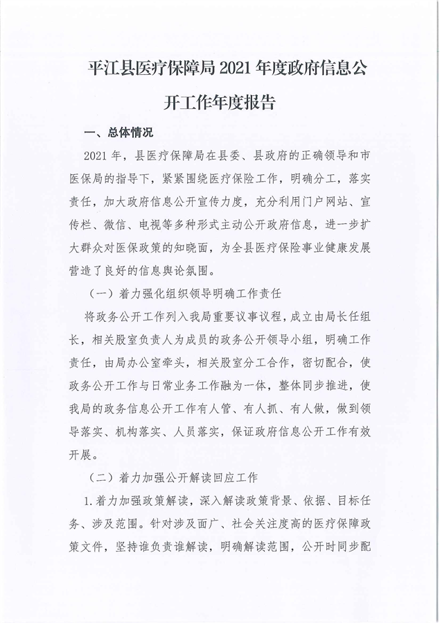 平江县医疗保障局2021年政府信息公开工作年度报告