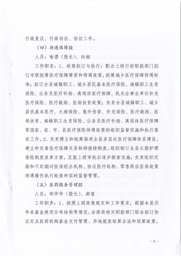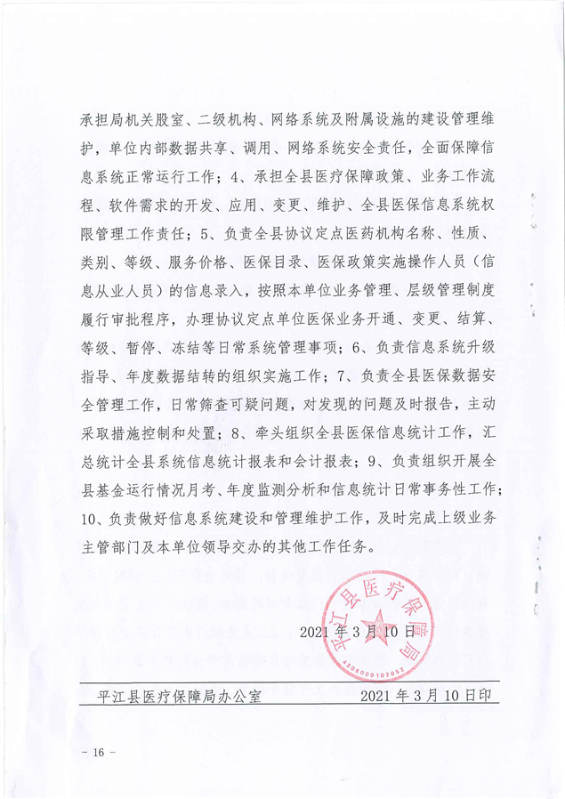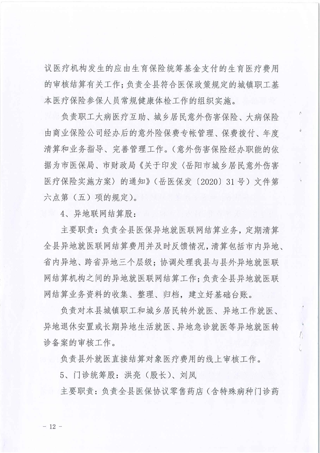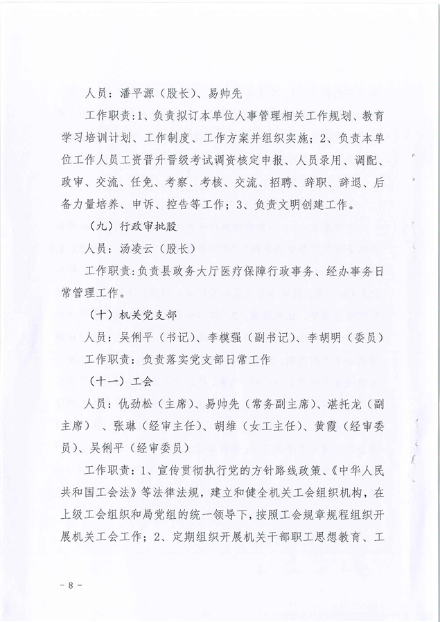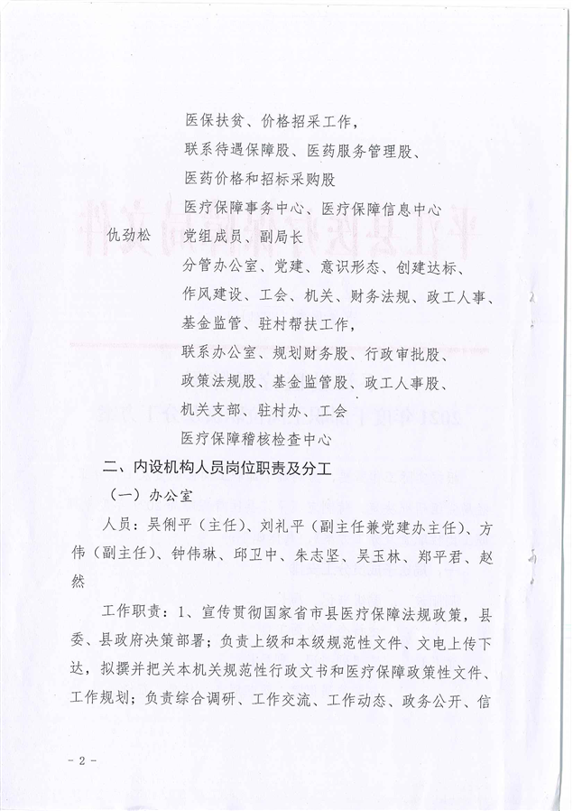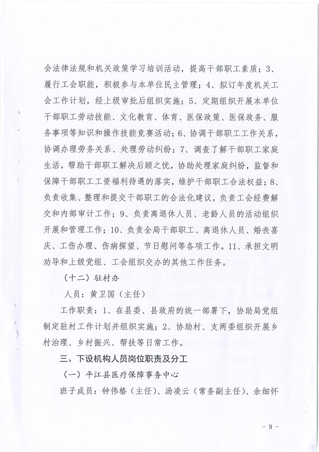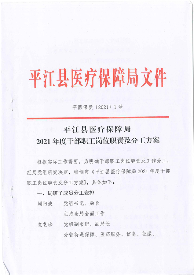 平江县医疗保障局2021年度干部职工岗位职责及分工方案