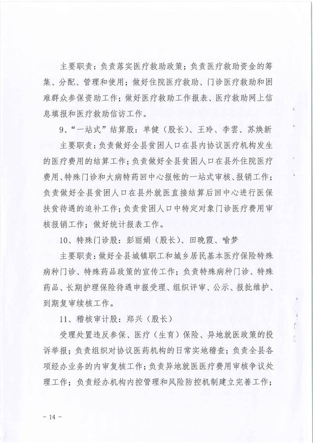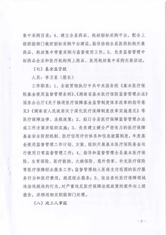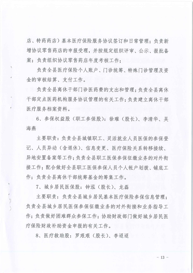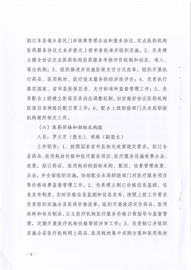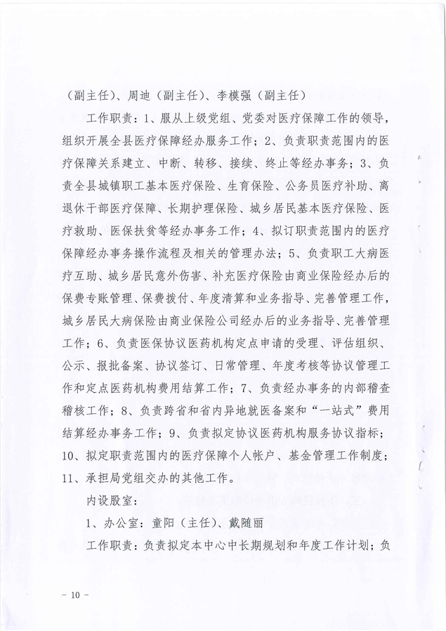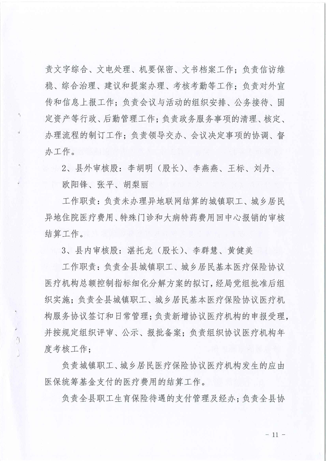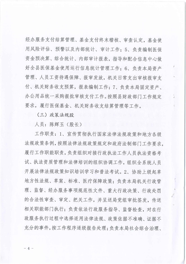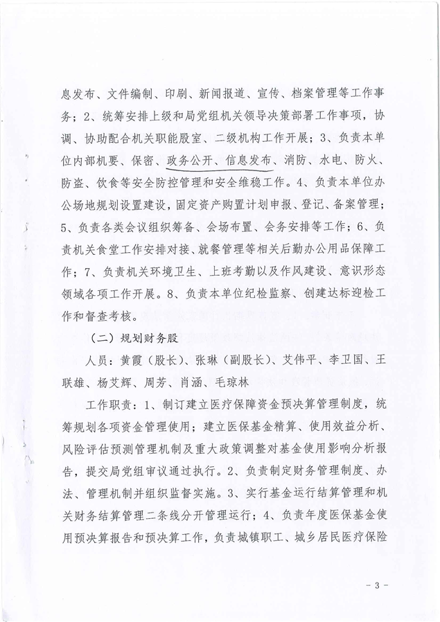 平江县医疗保障局2021年度干部职工岗位职责及分工方案