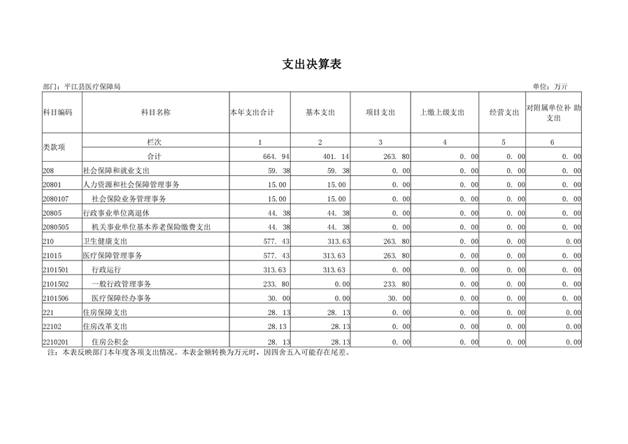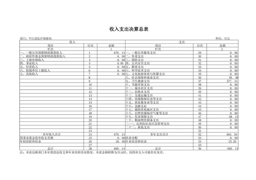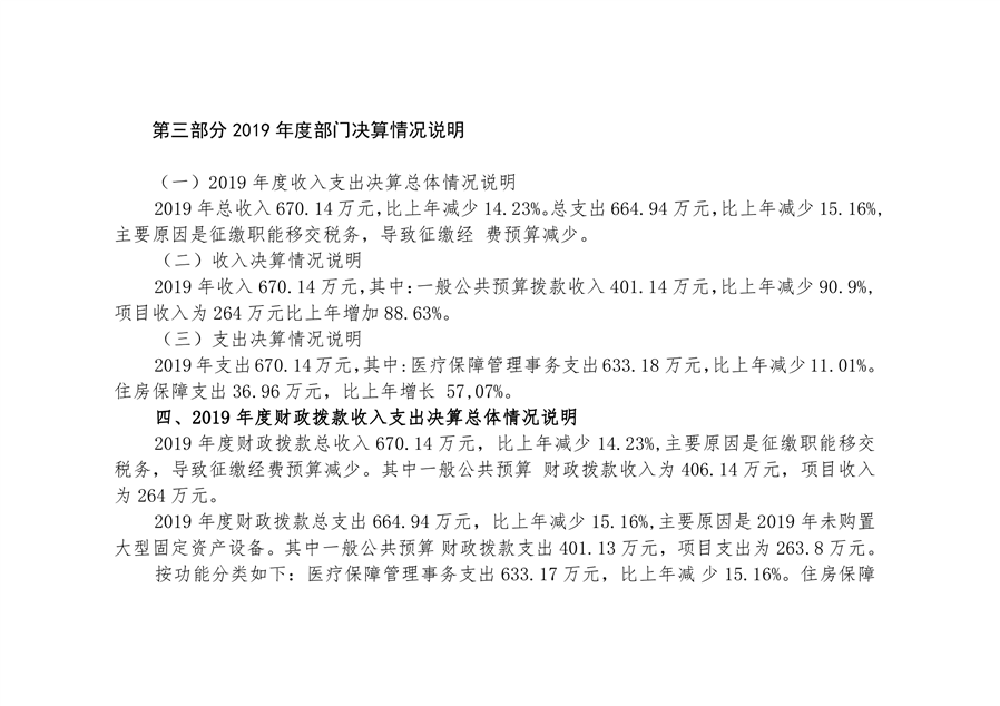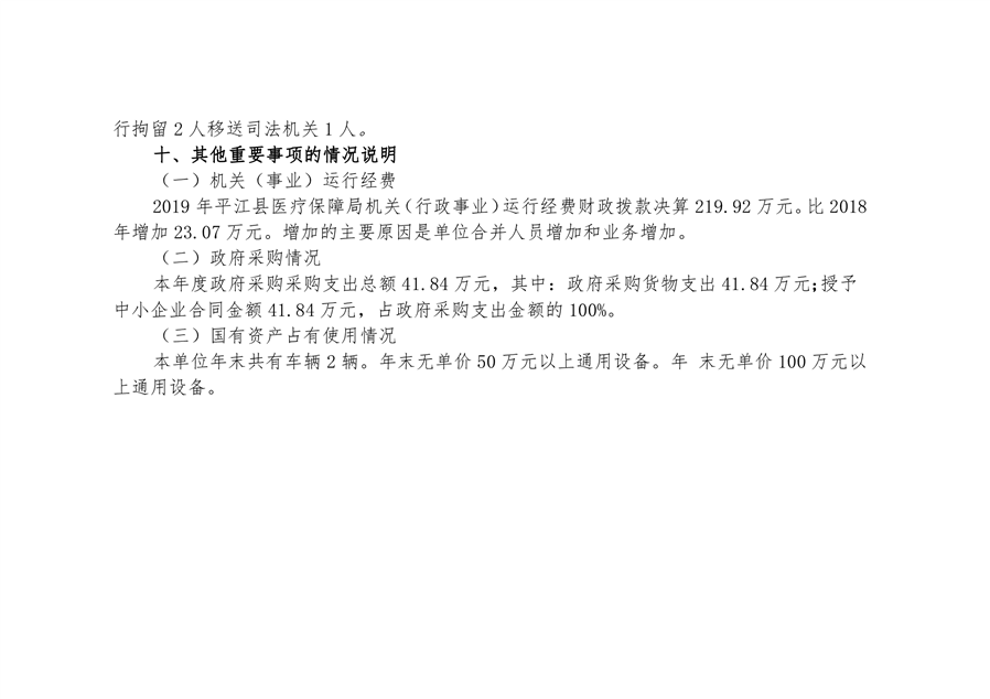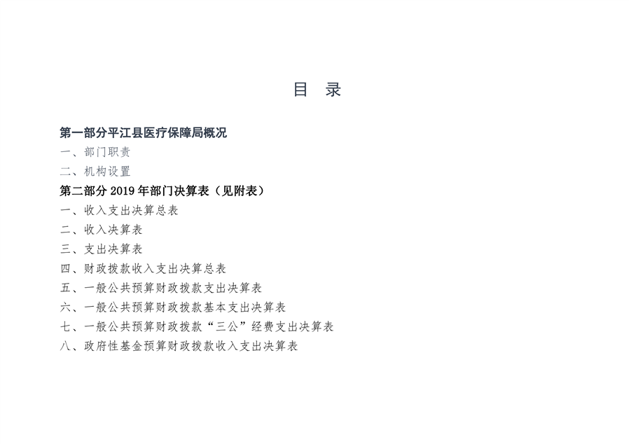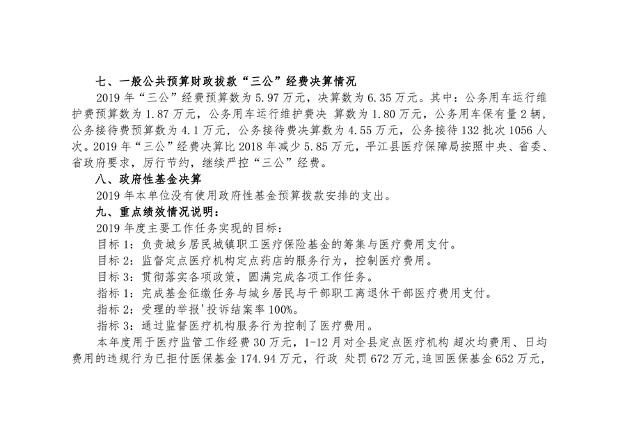 平江县医疗保障局2019年部门决算公开
