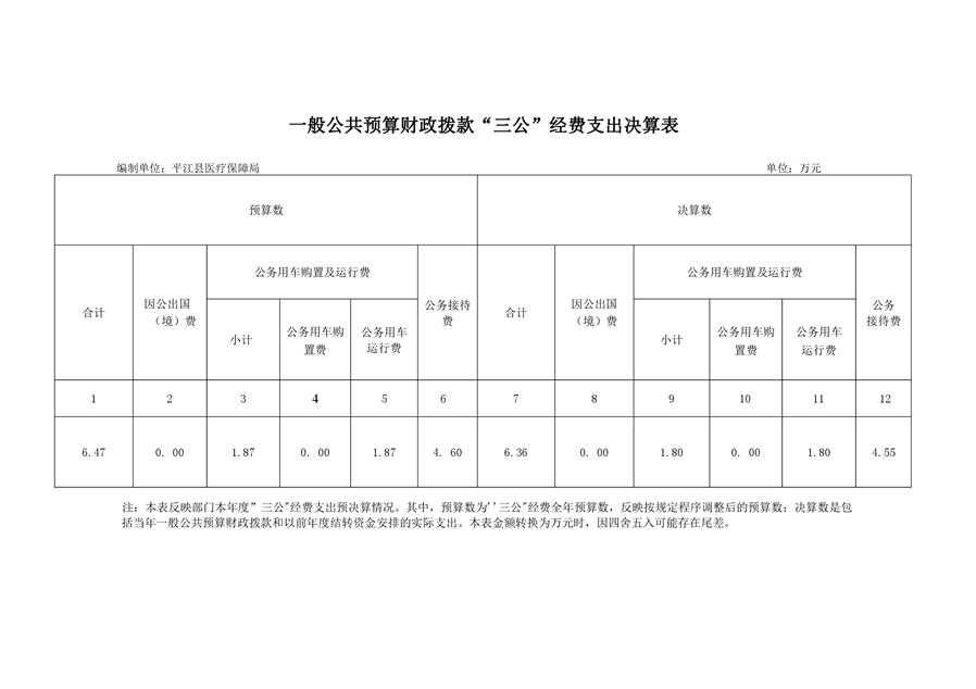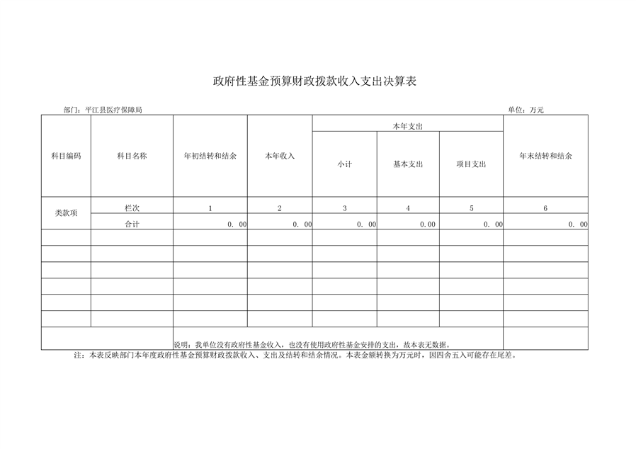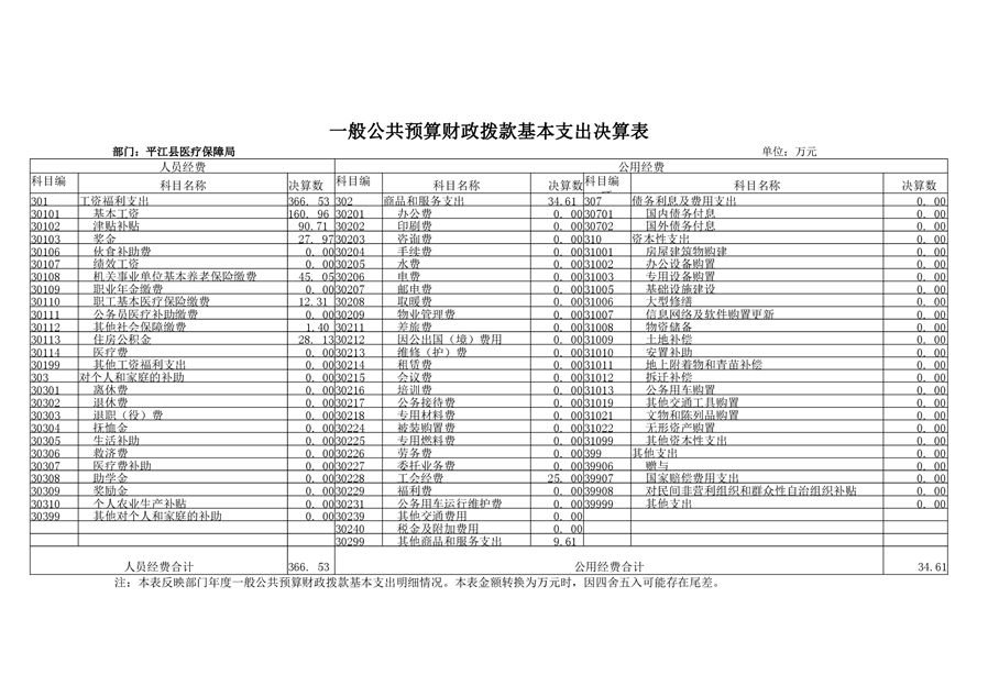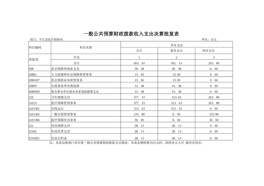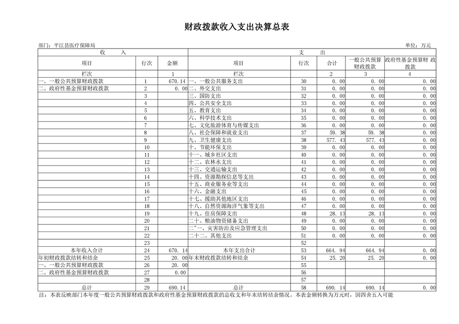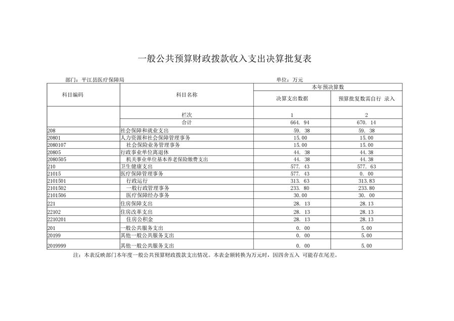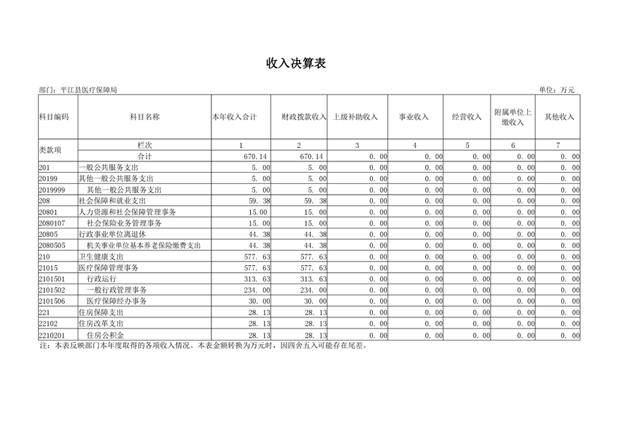 平江县医疗保障局2019年部门决算公开