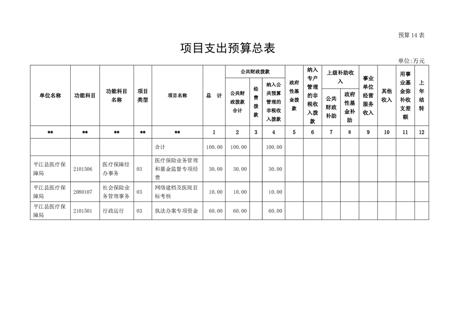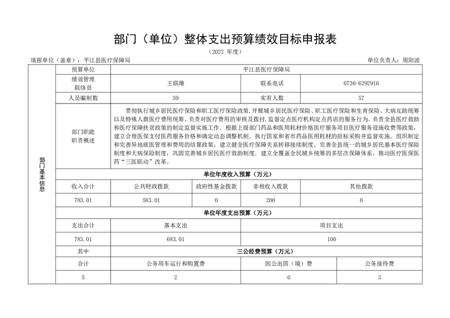 平江县医疗保障局2022年度部门预算