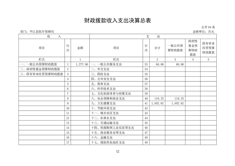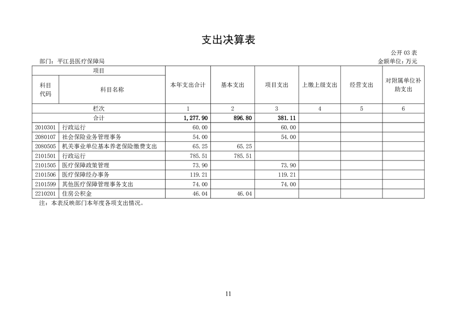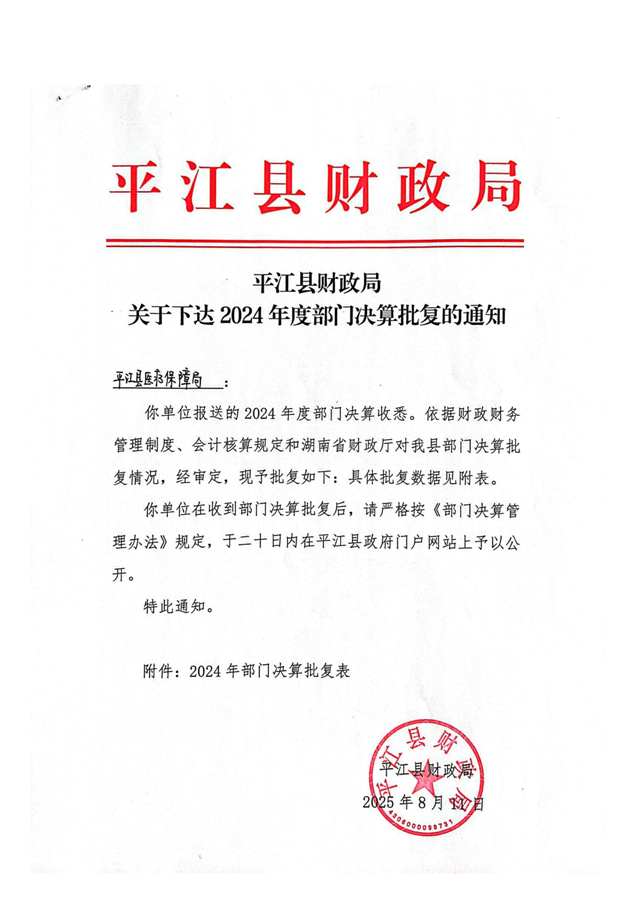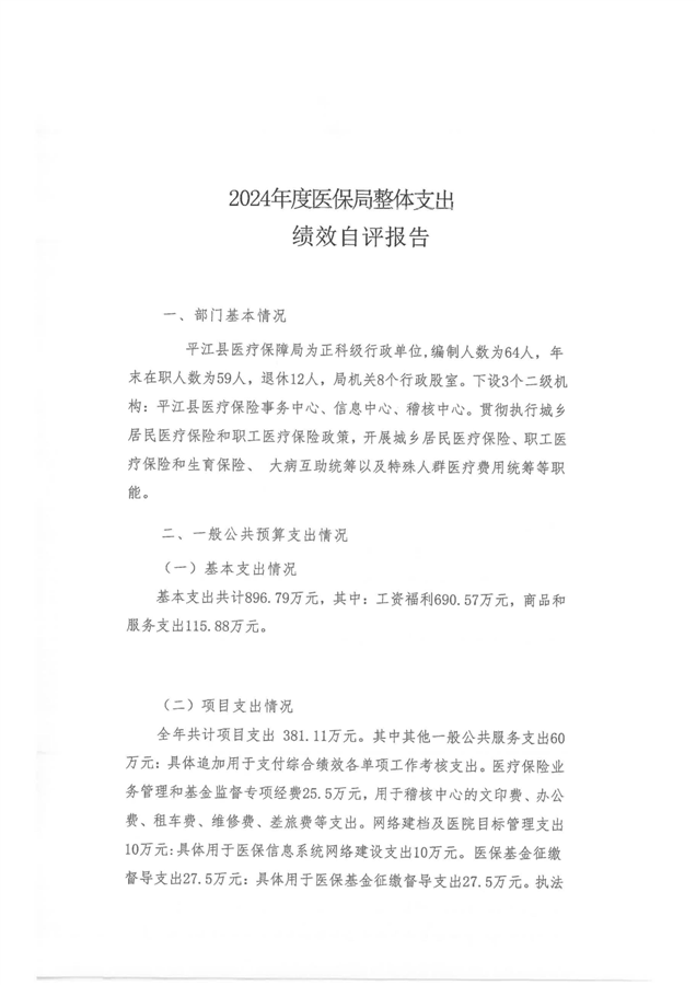 2024年度平江县医疗保障局部门决算公开