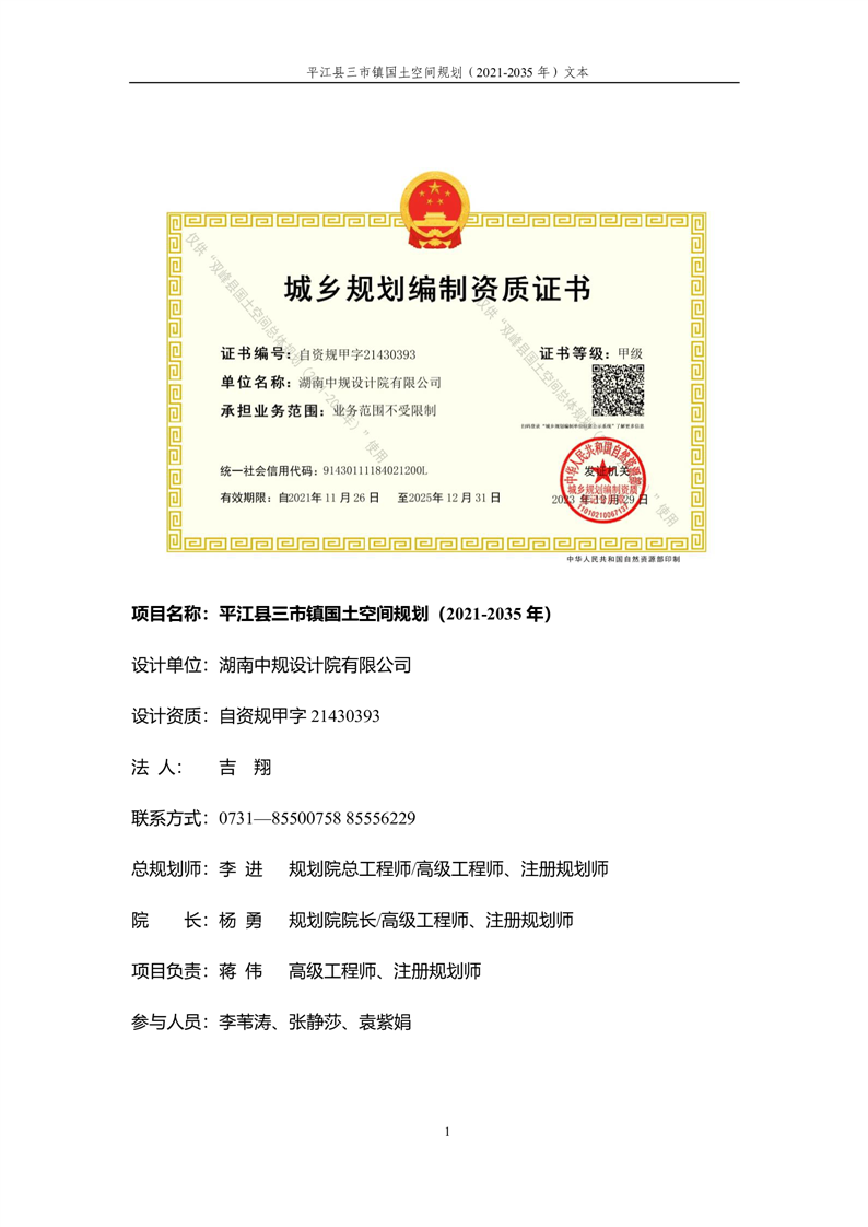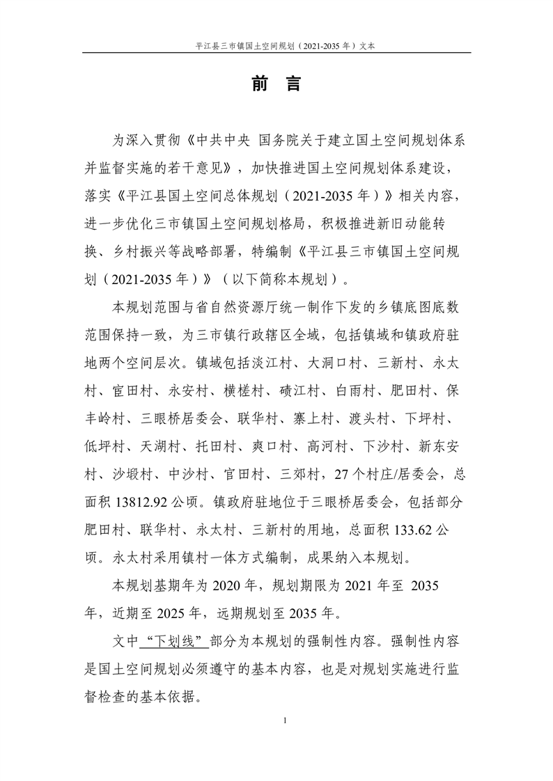 平江县三市镇国土空间规划(2021-2035年)公示说明