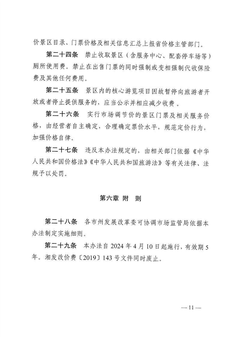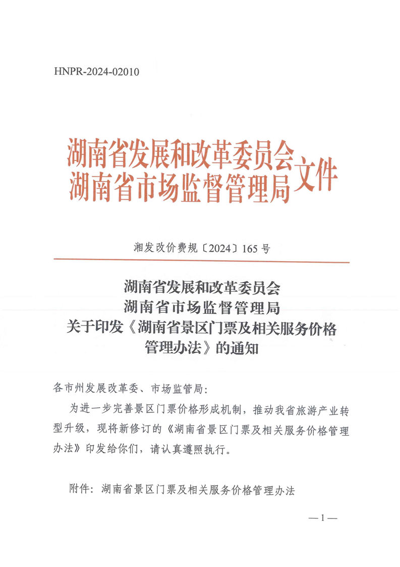 湖南省发展和改革委员会 湖南省市场监督管理局关于印发《湖南省景区门票及相关服务价格管理办法》的通知