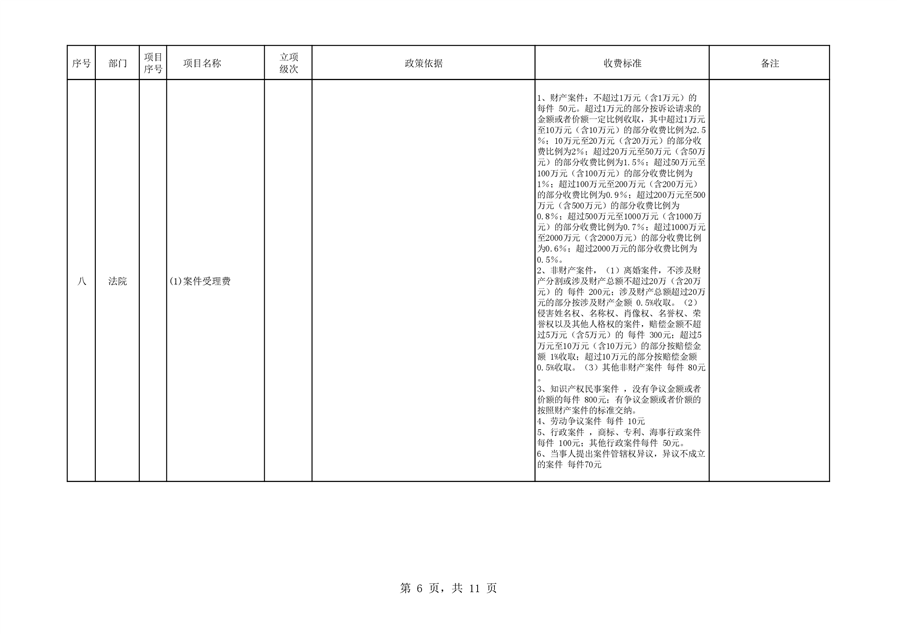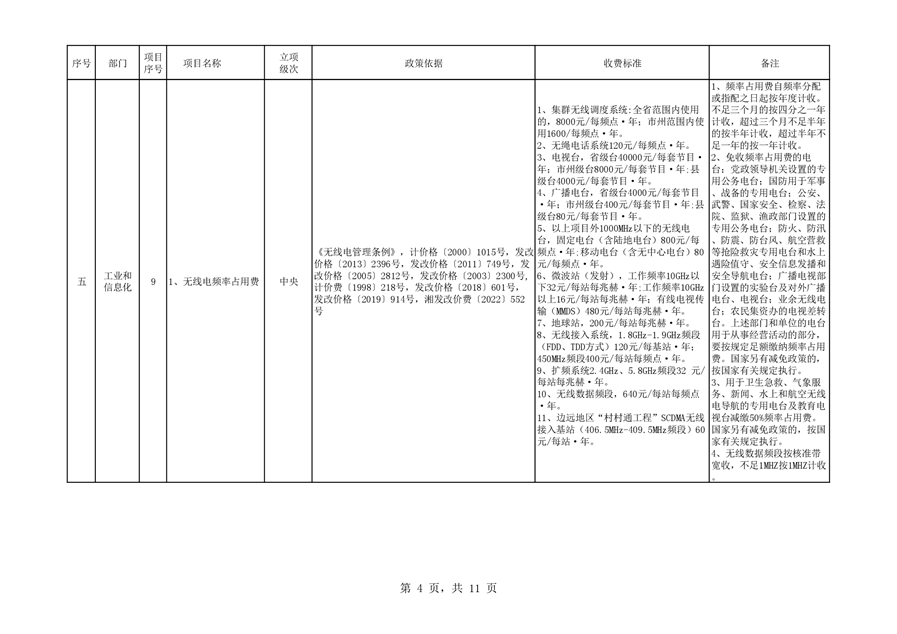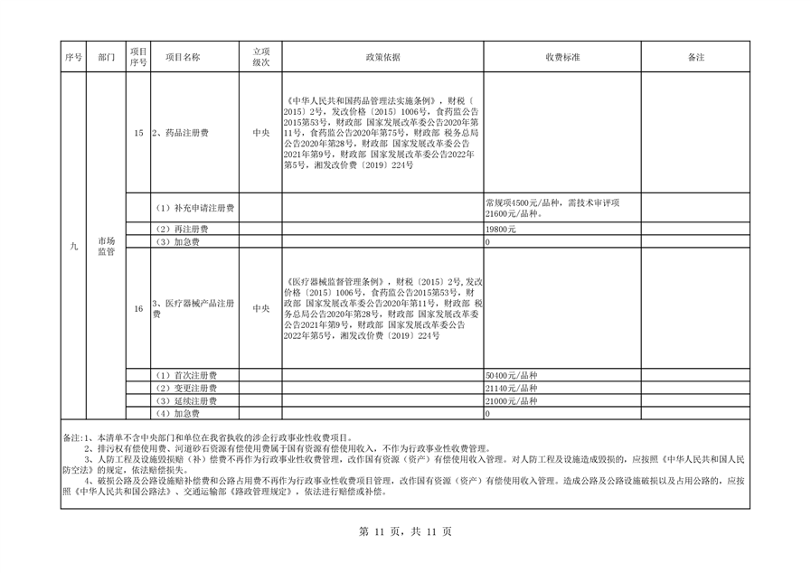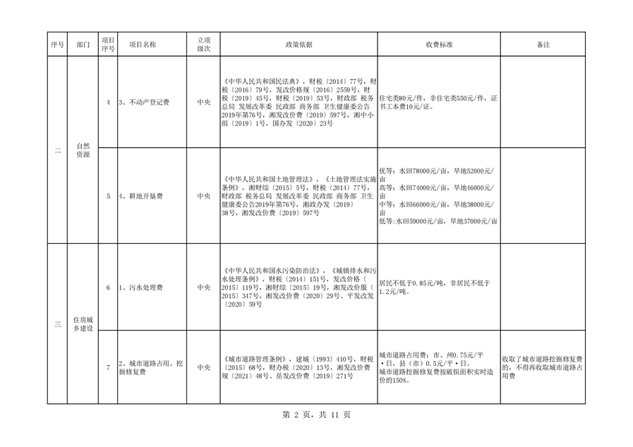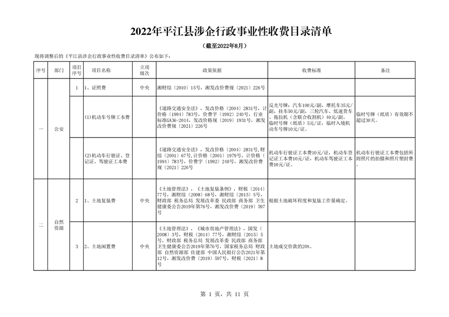 2022年平江县涉企行政事业性收费目录清单