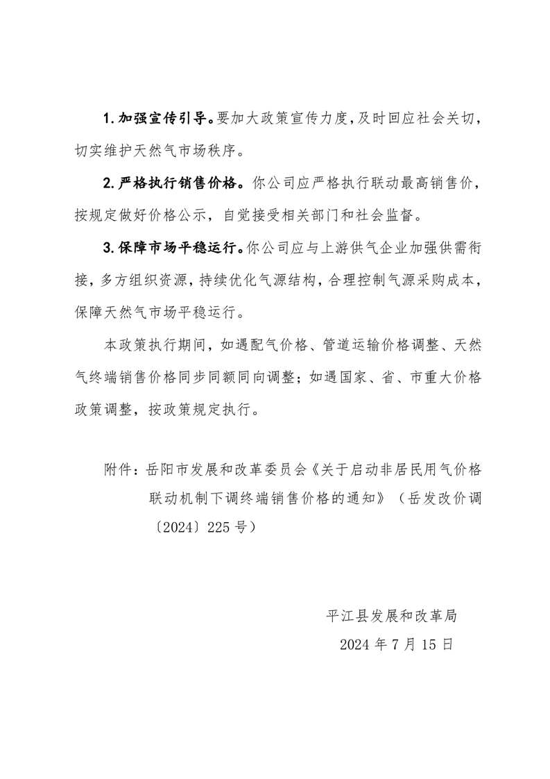 岳阳市发改委《关于启动非居民用气价格联动机制下调终端销售价格的通知》( 岳发改价调[2024]225号).docx