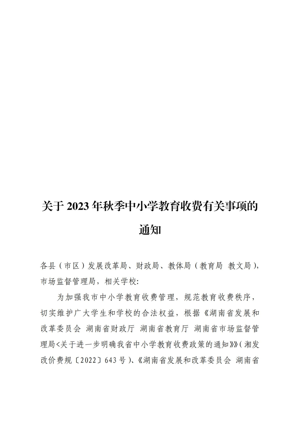 关于2023年秋季中小学教育收费有关事项的通知