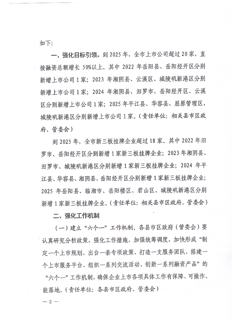 岳阳市人民政府办公室关于实施企业上市“金芙蓉”跃升行动计划的通知