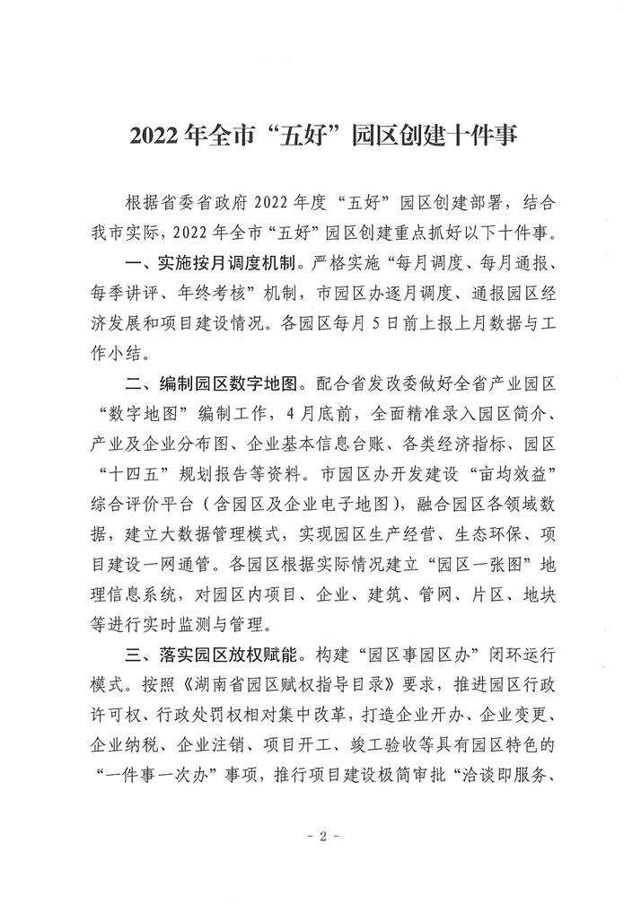 关于印发《2022年全市“五好”园区创建十件事》的通知(岳园办【2022】6号)