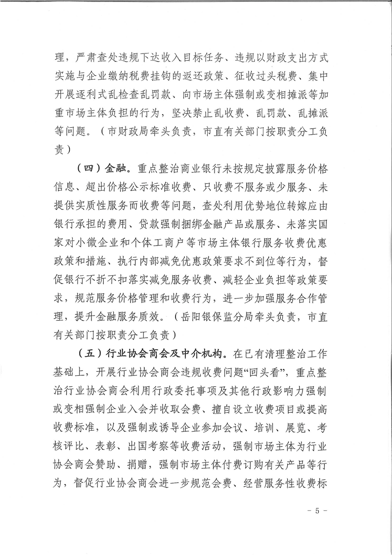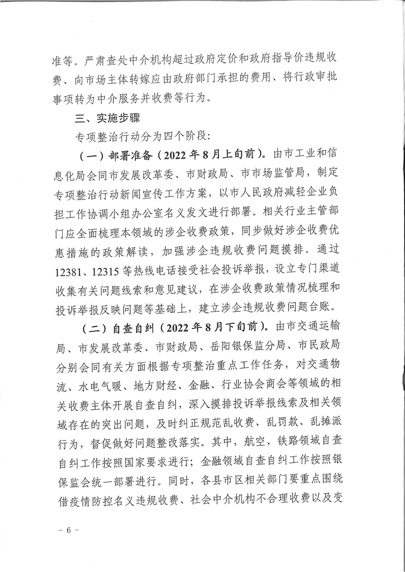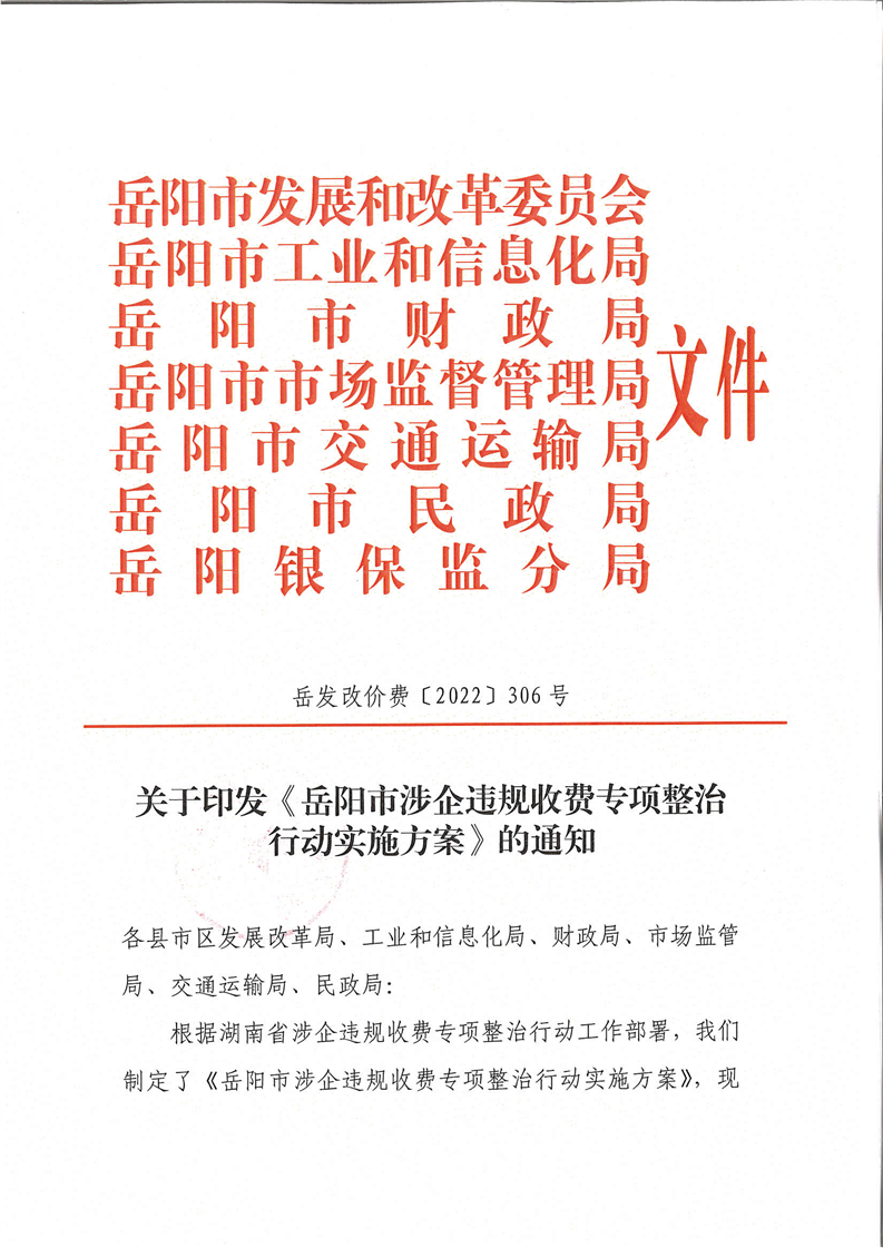 岳阳市涉企违规收费专项整治行动实施方案