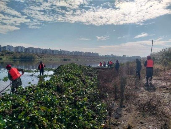 区域联动,推动碧水共治。街道主动对接上游乡镇,建立信息共享与联合打捞机制,通过“源头管控、中游拦截、下游清理”的全链条治理模式,有效减少水葫芦跨域扩散。