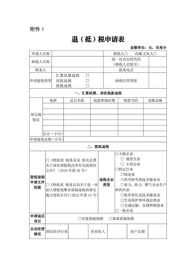 一、纳税人申请留抵退税,应在规定的留抵退税申请期间,完成本期增值税纳税申报后,通过电子税务局或办税服务厅提交《退(抵)税申请表》(见附件1)。