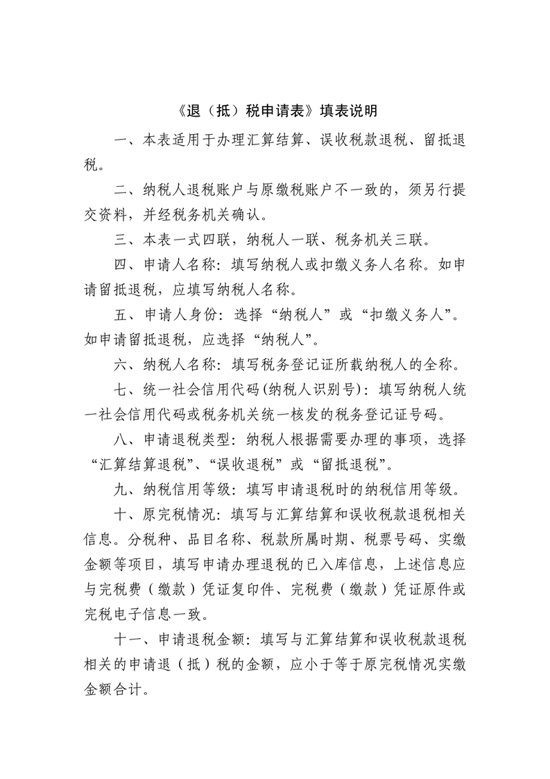 附件:退(抵)税申请表