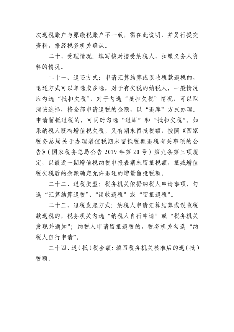 符合21号公告规定的纳税人申请退还留抵税额,应按照《国家税务总局关于办理增值税期末留抵税额退税有关事项的公告》(2019年第20号)和《国家税务总局关于进一步加大增值税期末留抵退税政策实施力度有关征管事项的公告》(2022年第4号)等规定办理相关留抵退税业务。同时,对《退(抵)税申请表》进行修订并重新发布(见附件)。