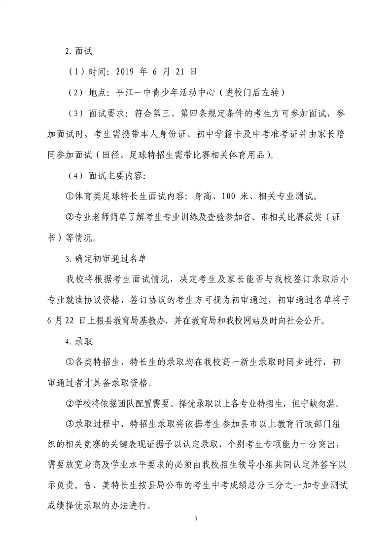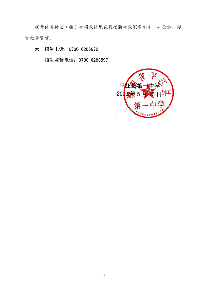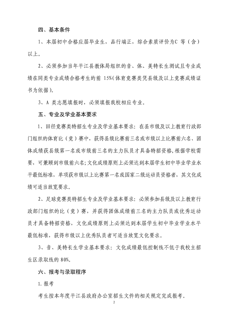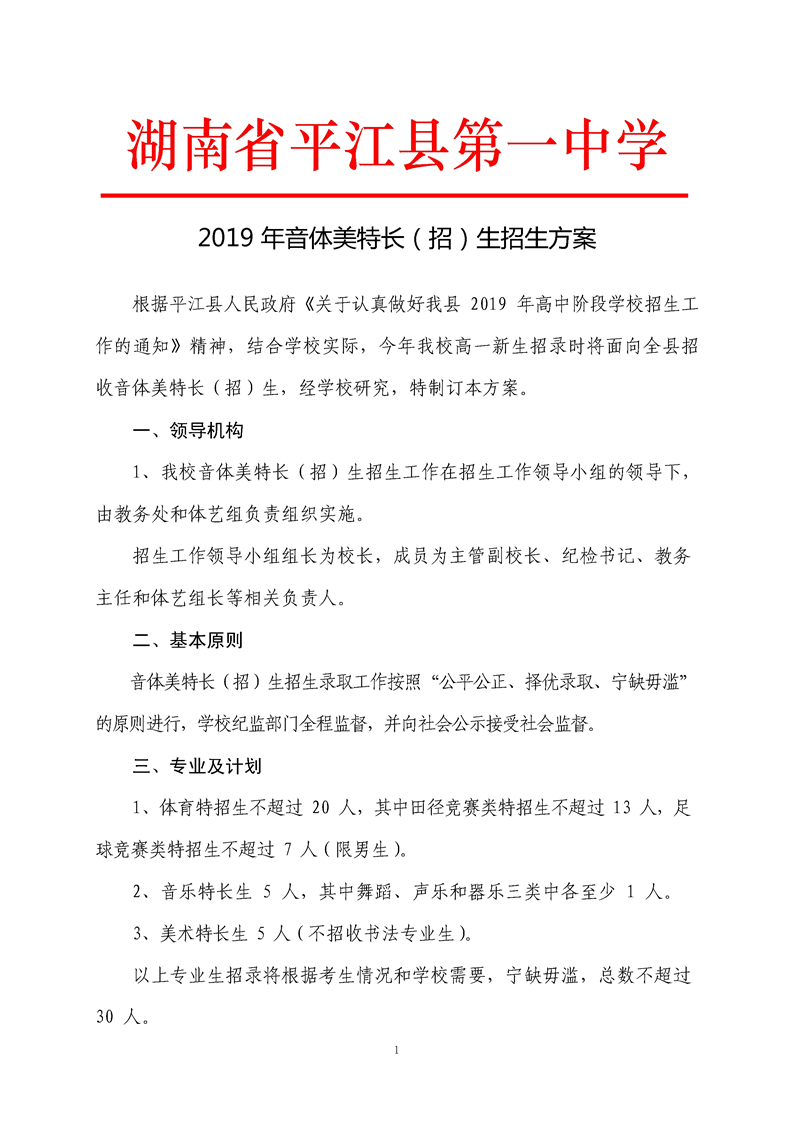 平江县第一中学2019年音体美特长(招)生招生方案