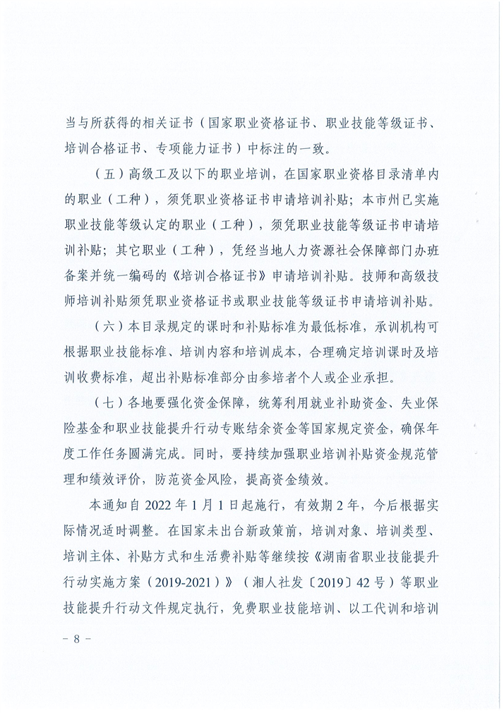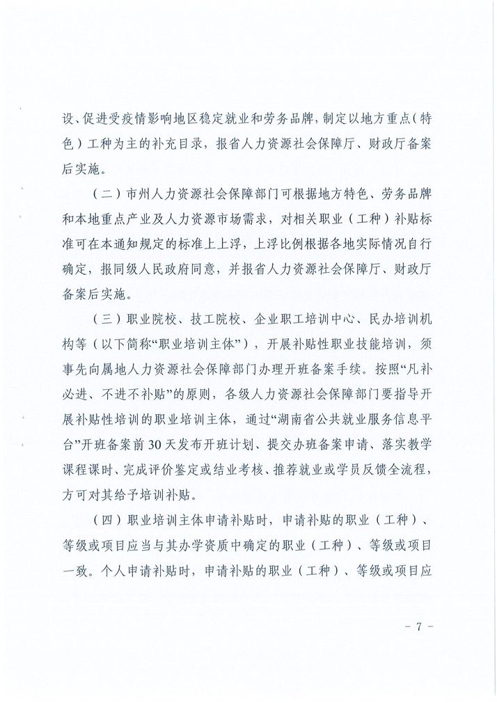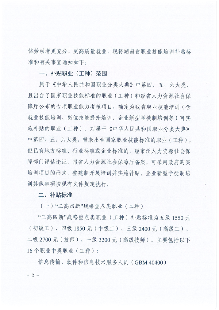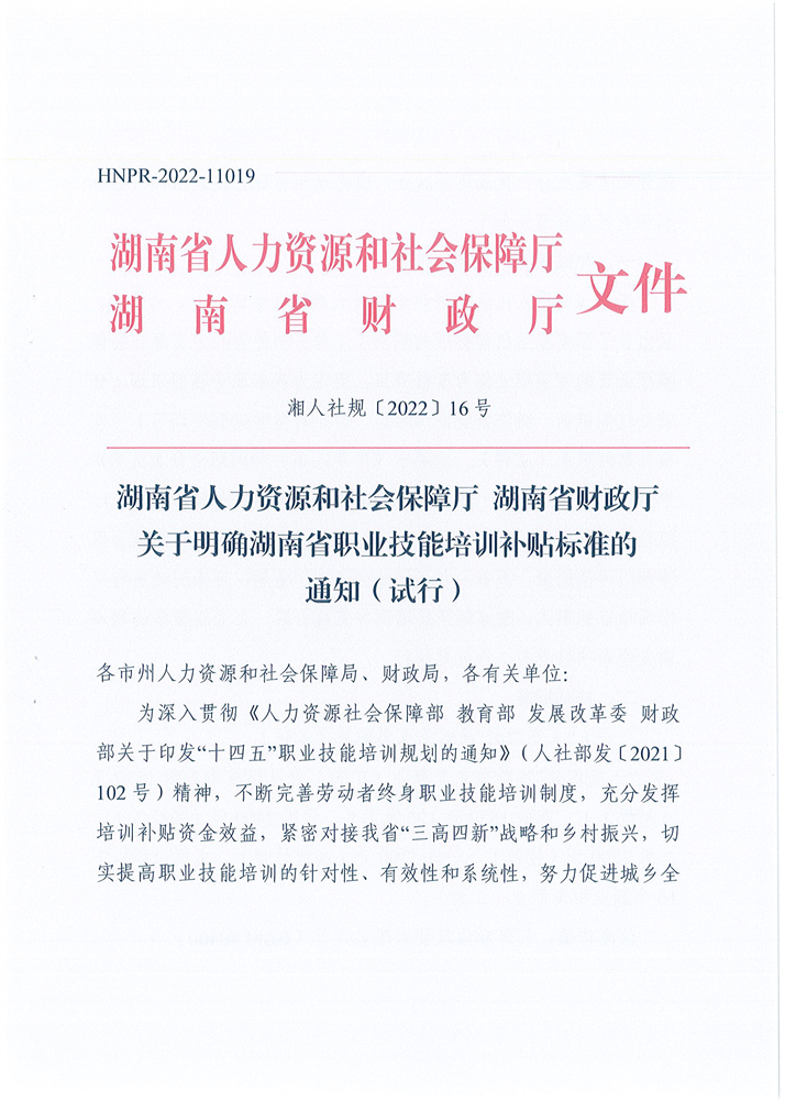 关于明确湖南省职业技能培训补贴标准的通知(试行)