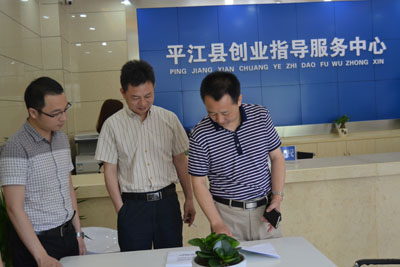 6 月16日 ,平江县创业指导服务中心正式对外开放,该中心设立在开发区东兴大道与育才路交界处县人社局大楼的东侧裙楼一楼。创业指导服务中心负责人介绍:“中心设立创业政策扶持、创业担保贷款、创业就业登记三个服务窗口,主要承担全县创新创业带动就业工作,公共服务职责是创业政策发布、解答;创业贷款申请受理;创业就业登记受理;供求职申请登记;创业补贴申请受理;创业培训报名受理;创业大赛组织发动以及创业系列活动的组织实施和服务。办事人到相关的窗口就能咨询和办理所需事项,以后无需楼上楼下到处找了。”