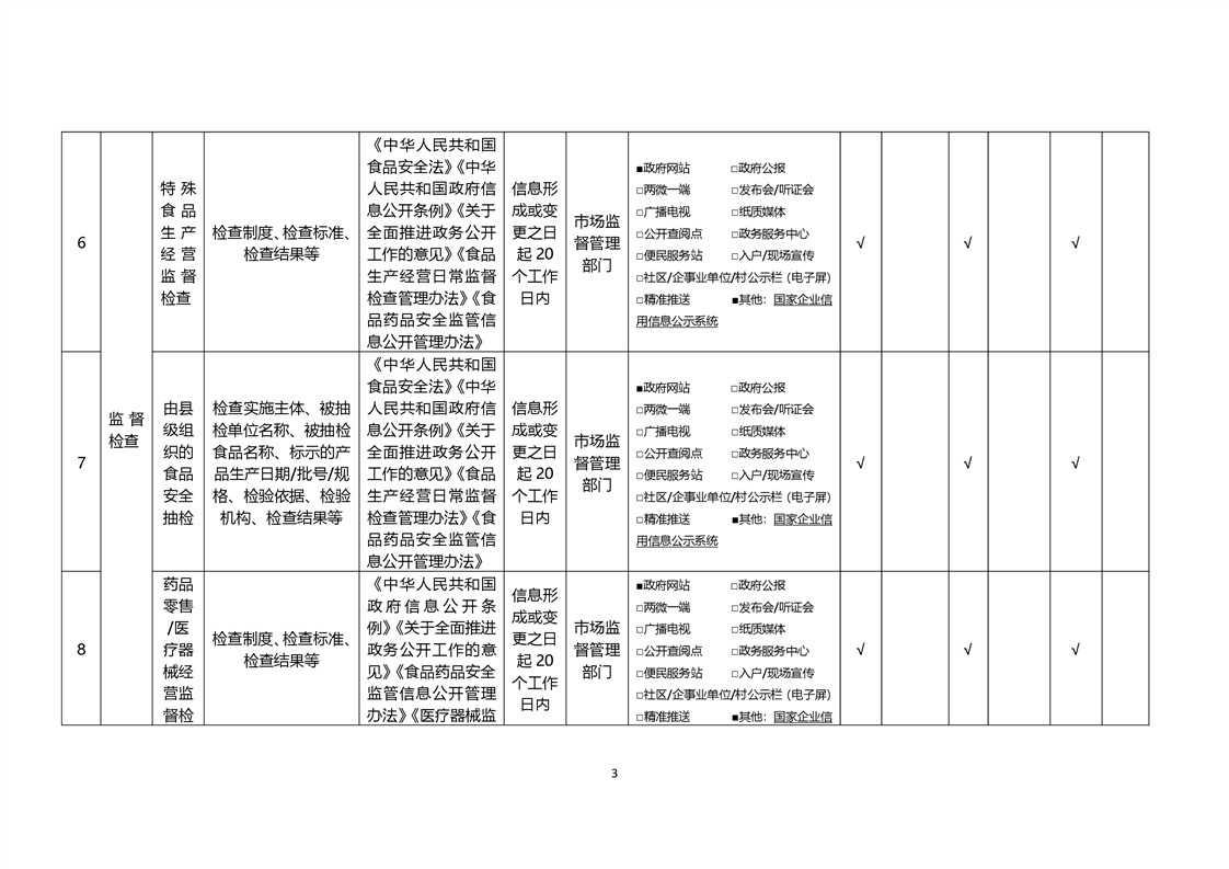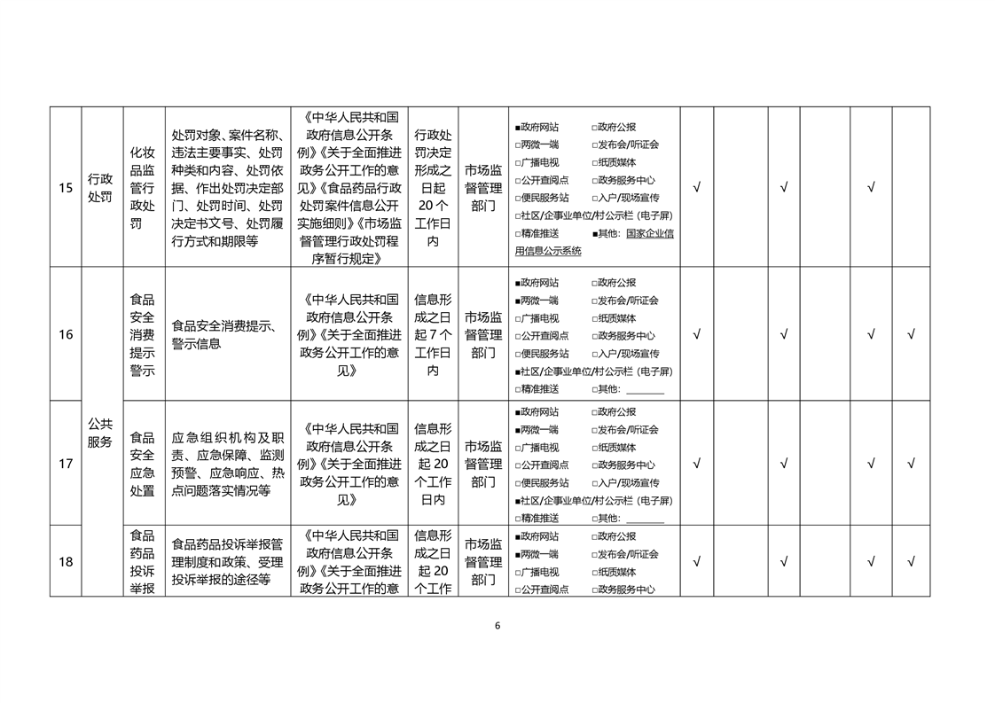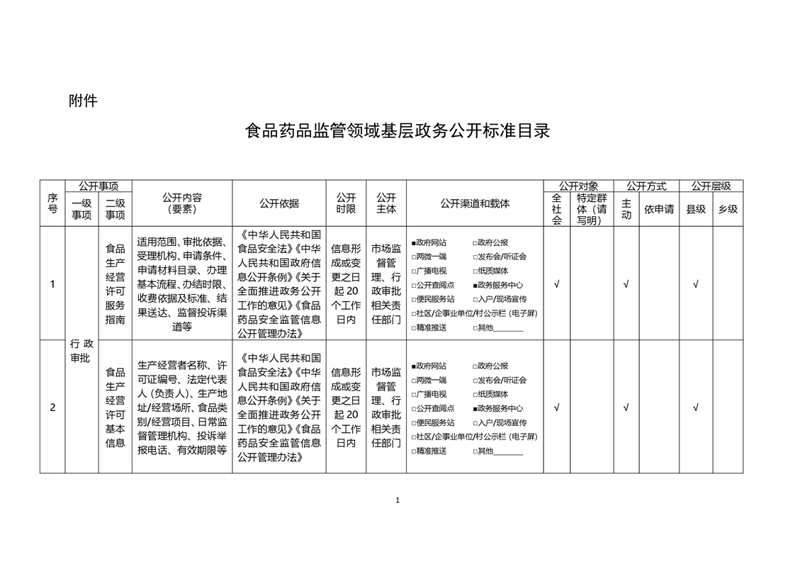 食品药品监管领域基层政务公开标准目录