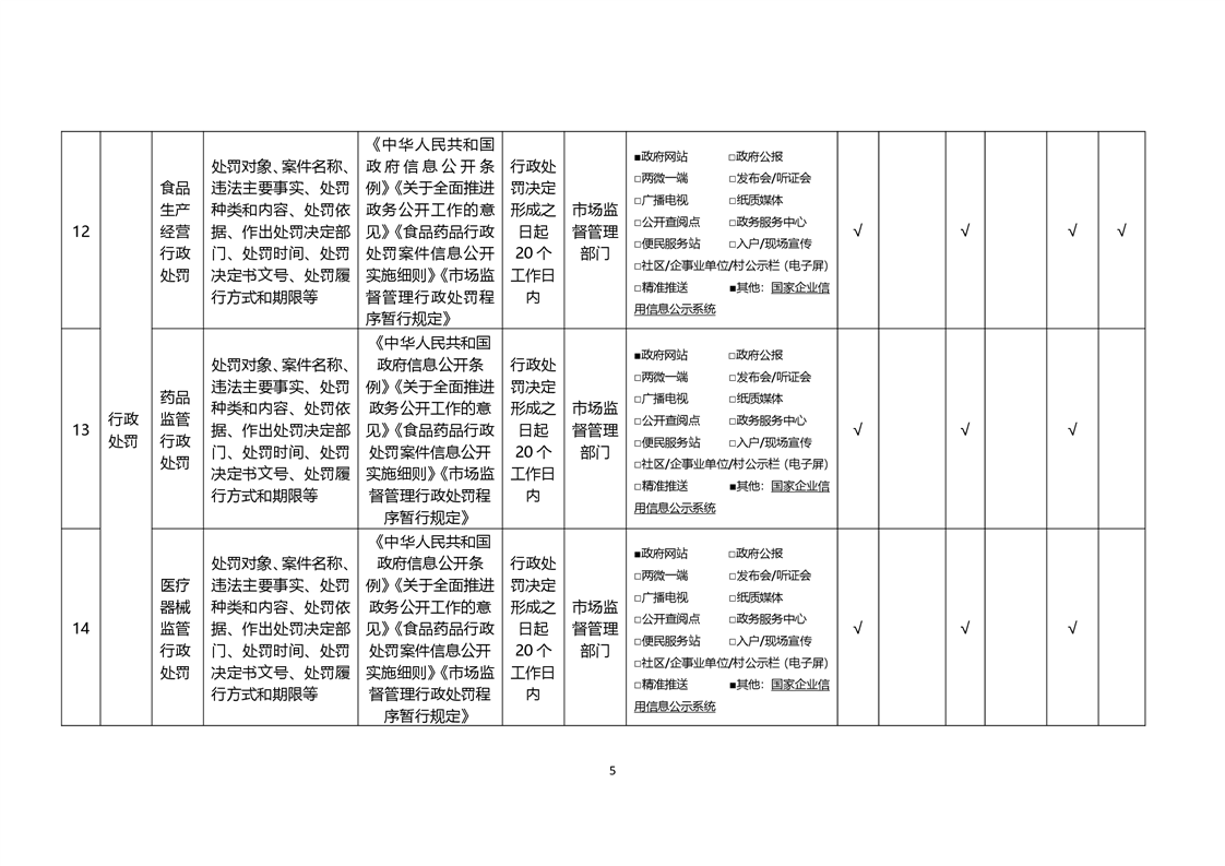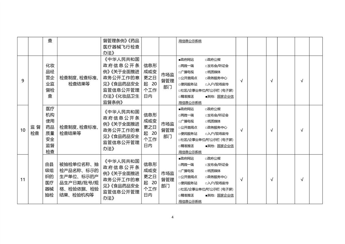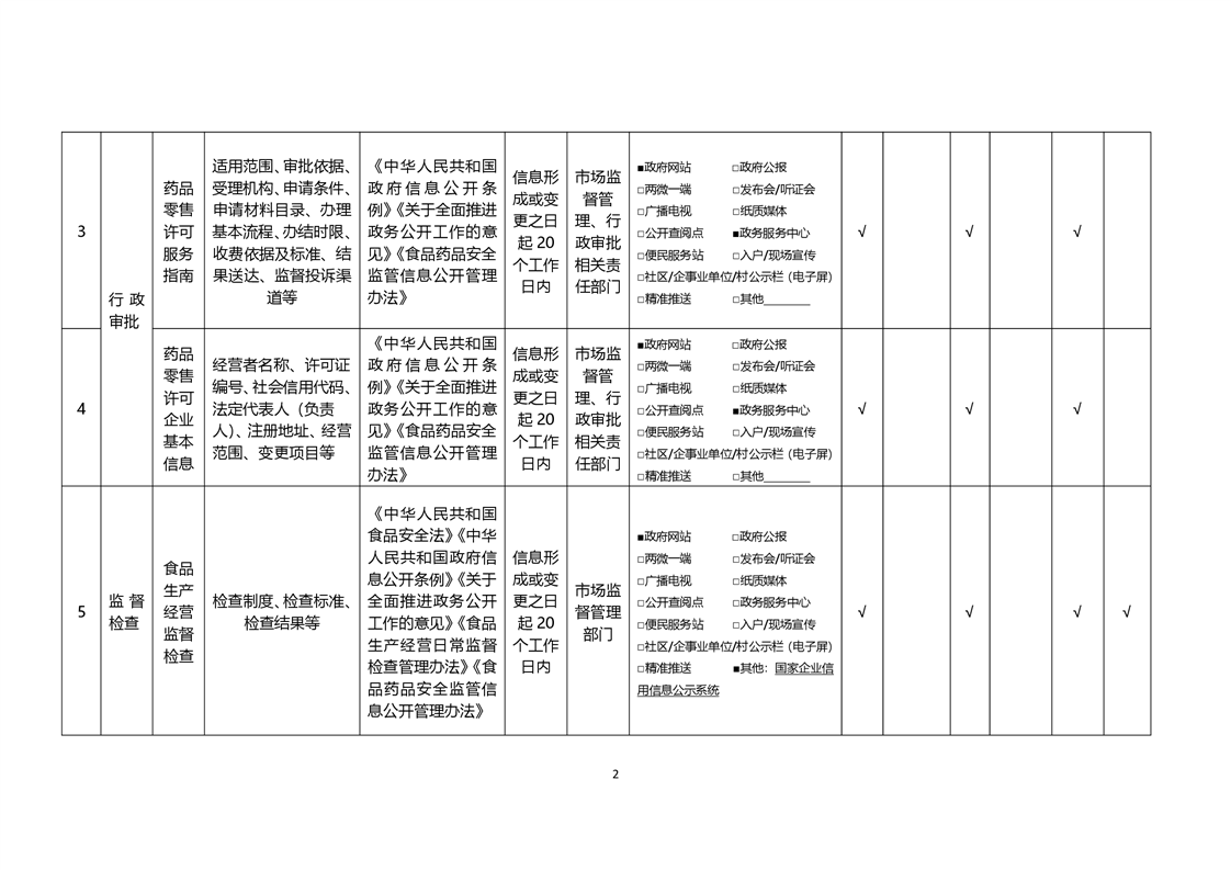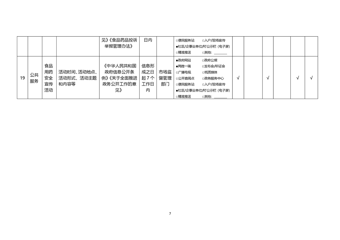 食品药品监管领域基层政务公开标准目录