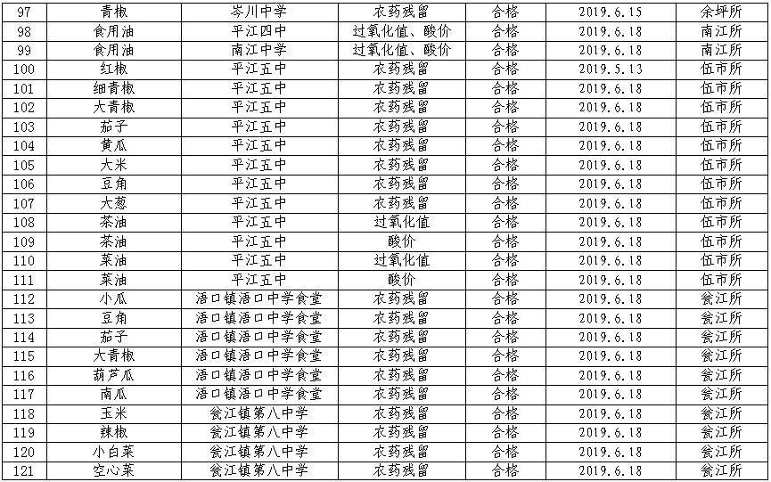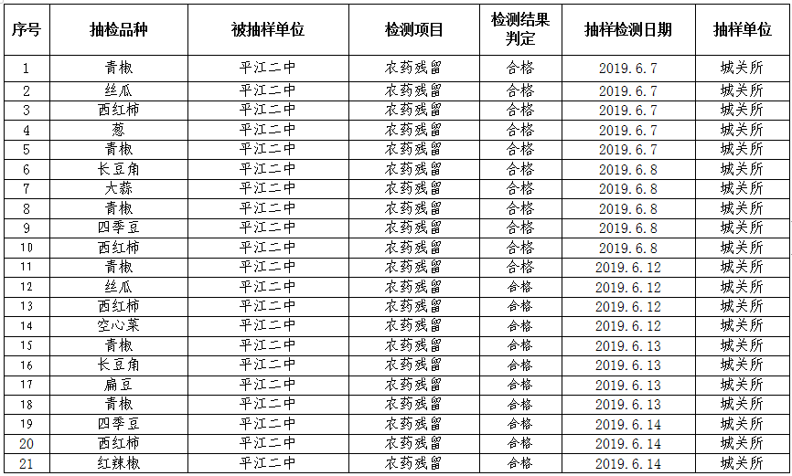 为切实加强食品安全工作的监管力度,保障人民群众舌尖上的食品安全,根据《平江县市场监督管理局2019年食品安全快速检测工作计划》,现将平江县市场监督管理局2019年6月份各基层所食品快速检测结果公示如下: