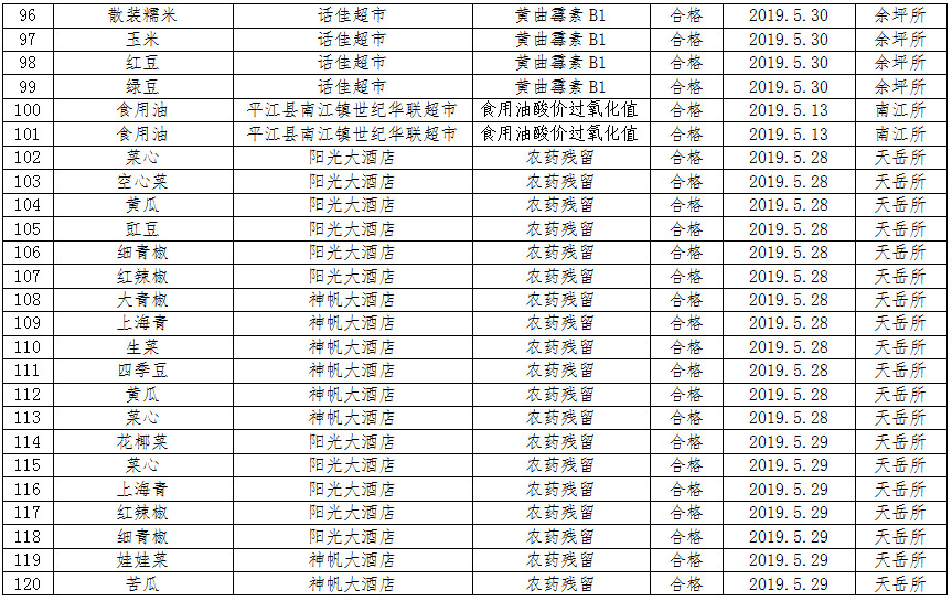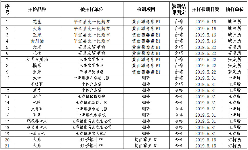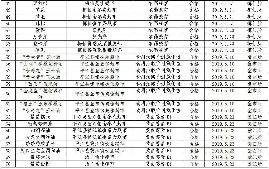 为切实加强食品安全工作的监管力度,保障人民群众舌尖上的食品安全,根据《平江县市场监督管理局2019年食品安全快速检测工作计划》,现将平江县市场监督管理局2019年5月份各基层所食品快速检测结果公示如下: